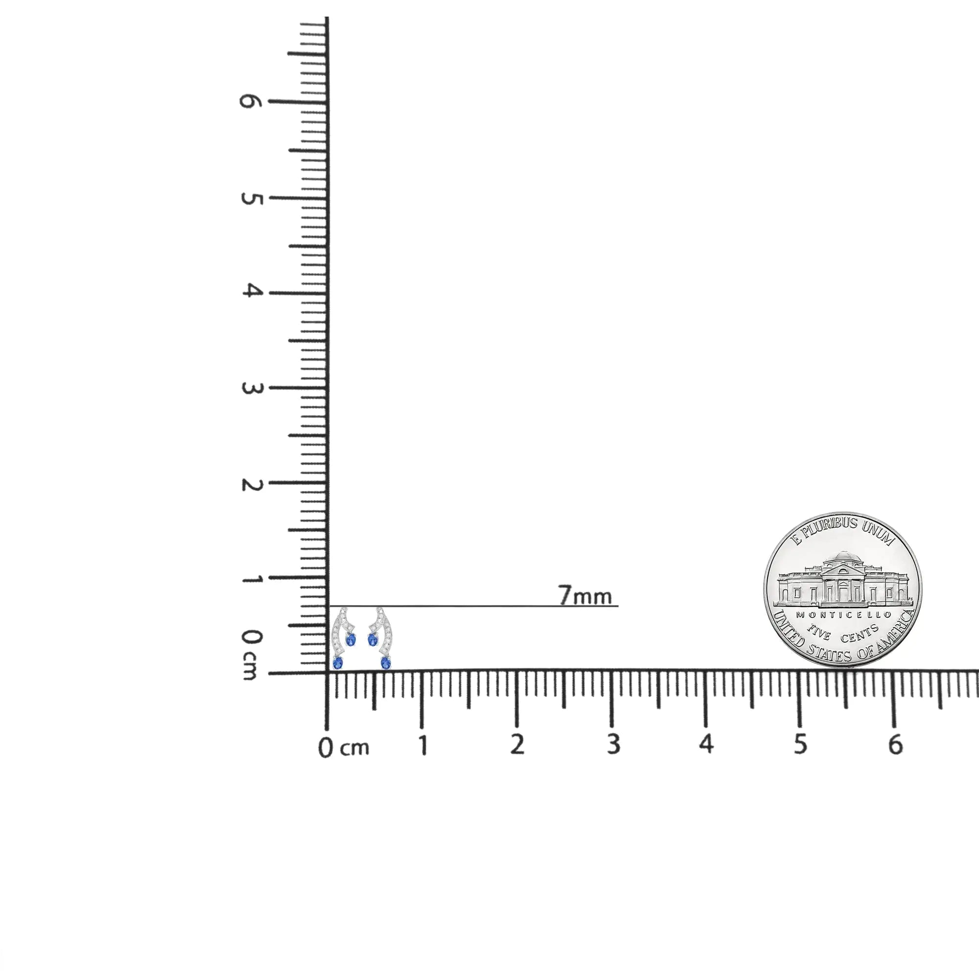 Style Loft Collection 14K White Gold 4x3MM Oval Shaped Natural Blue Tanzanite Gemstone and 1/5 Ctw Diamond Double 3/4" Inch Drop Stud Earrings (H-I Color, VS1-VS2 Clarity)