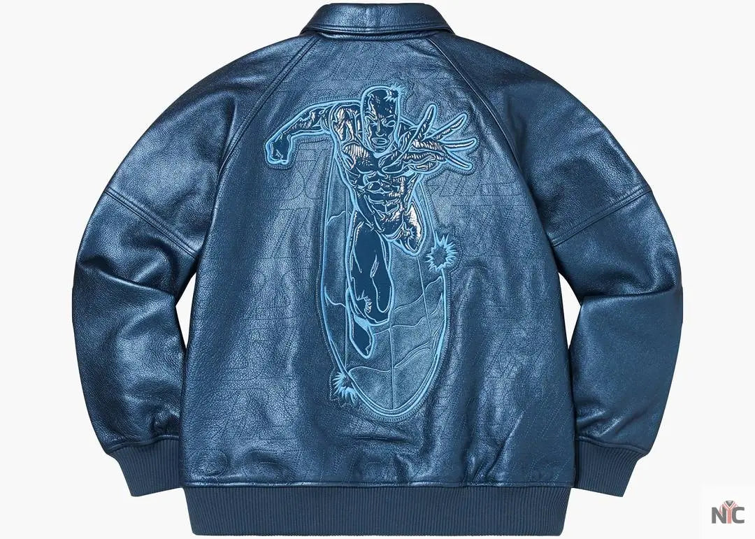 Supreme Silver Surfer Blue Leather Varsity Jacket