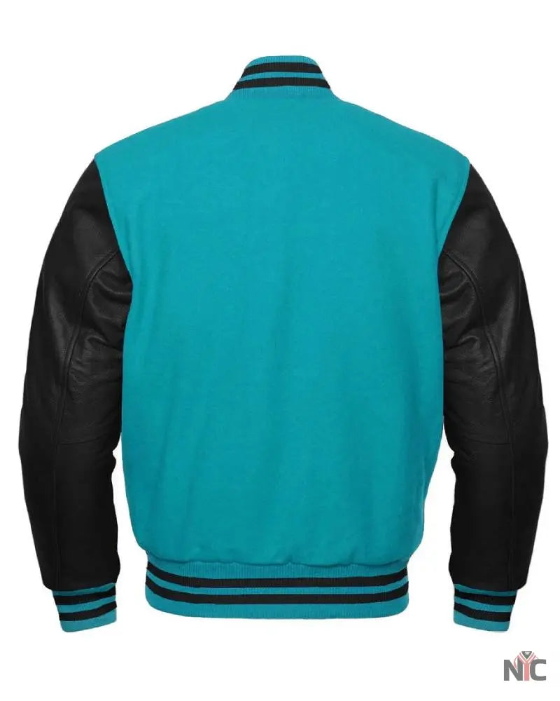 Tiffany Blue And Black Varsity Jacket ‐ Male / 4XL