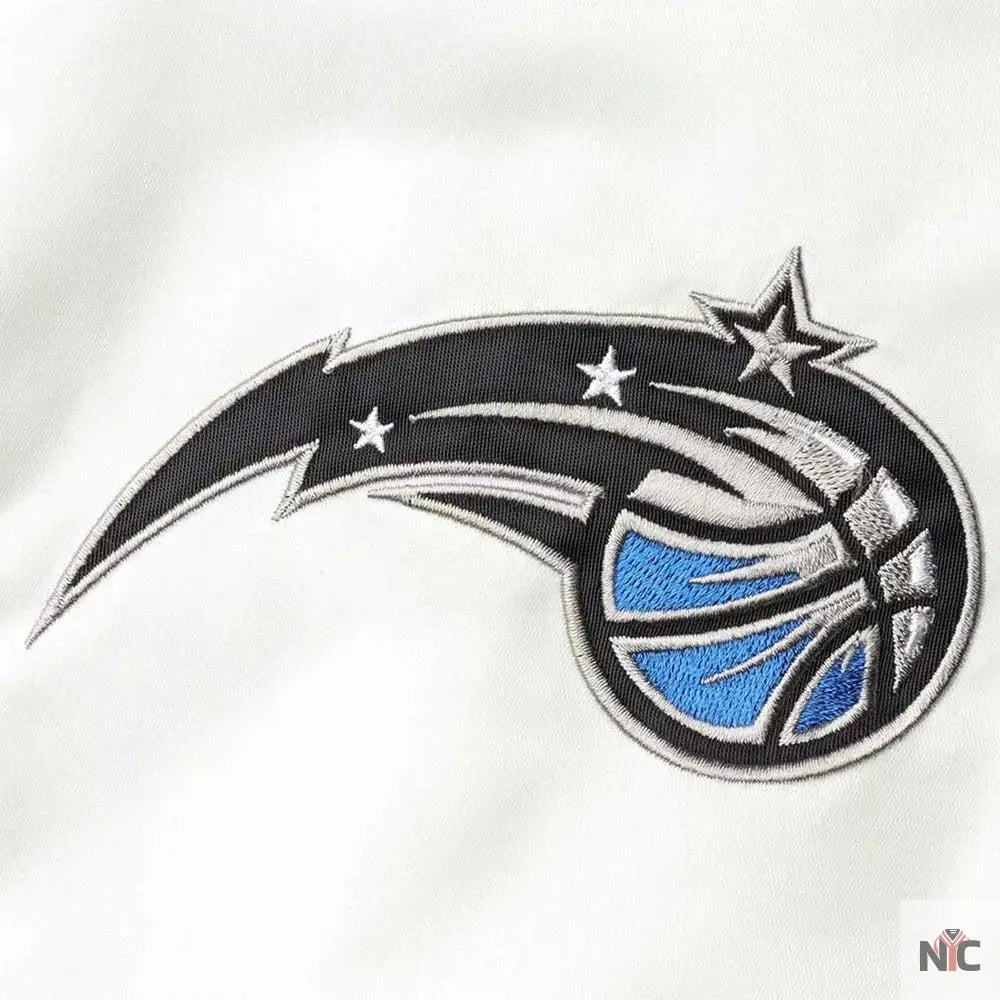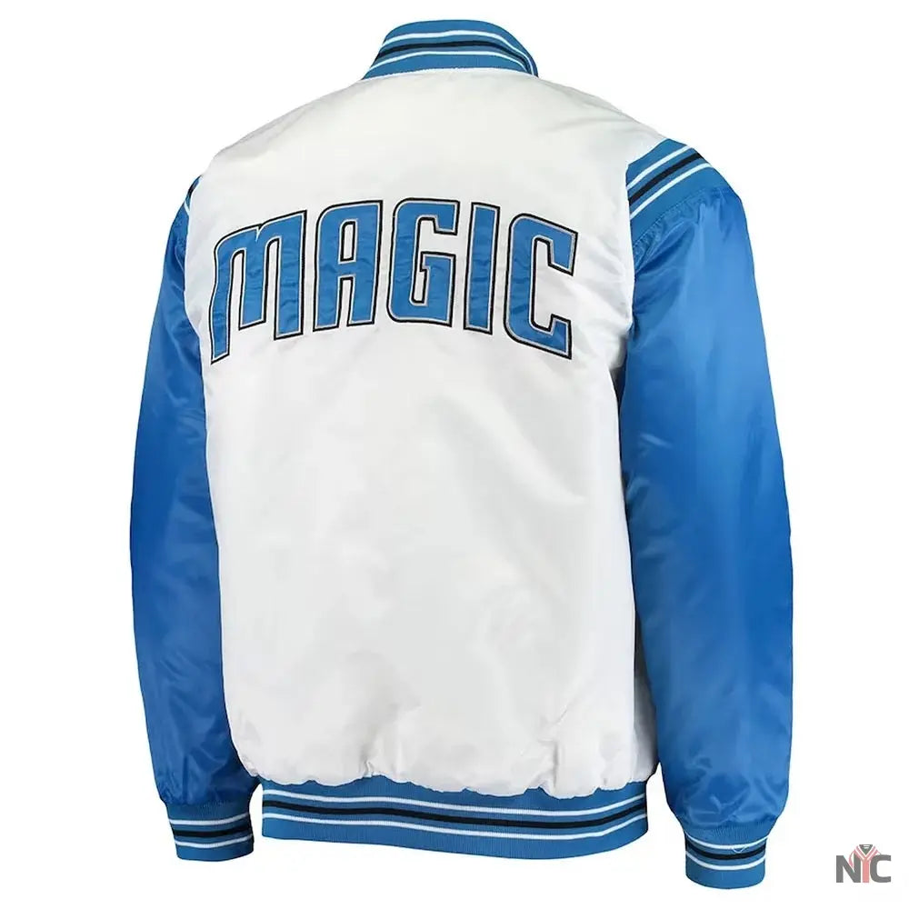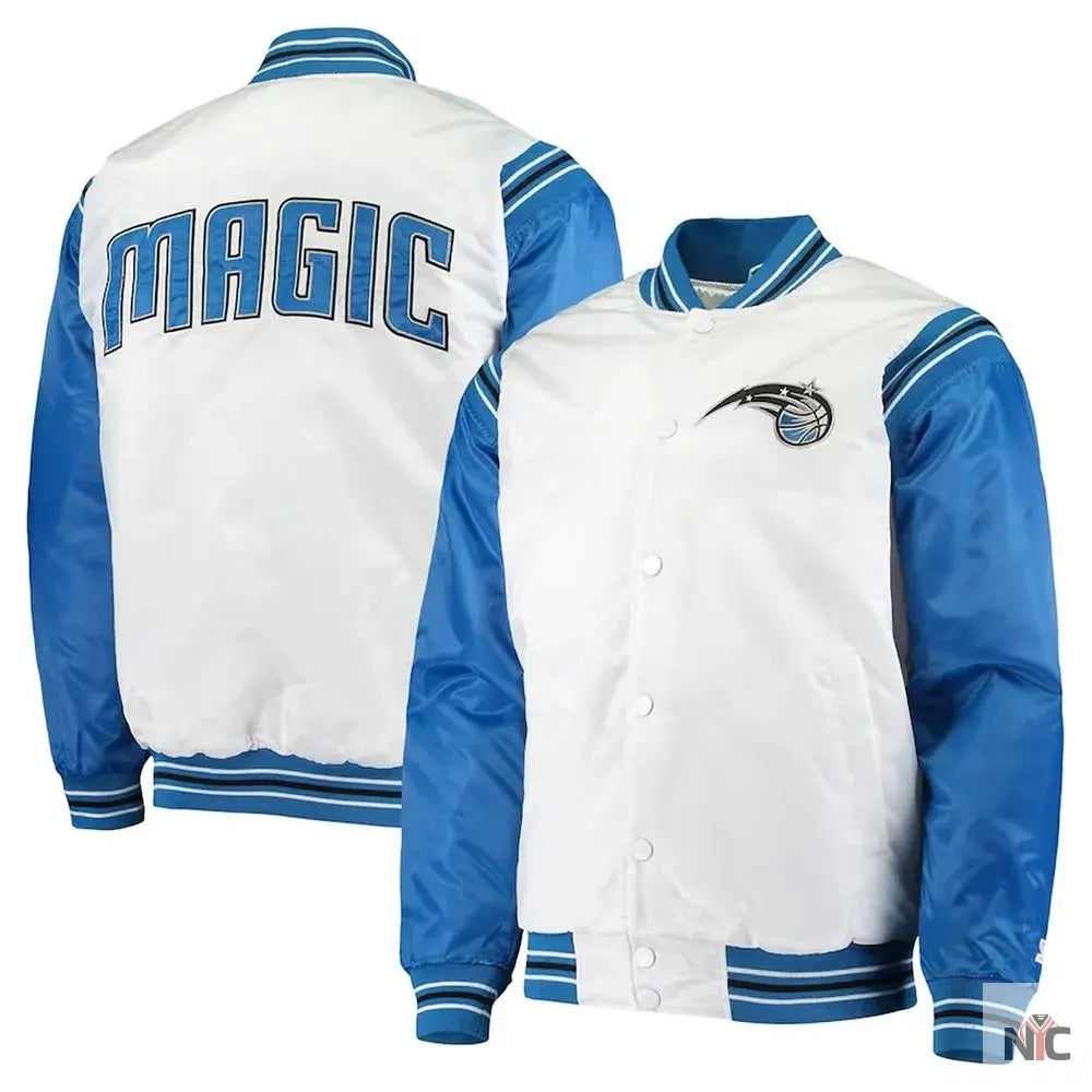 White and Blue Orlando Magic Renegade Varsity Satin Jacket