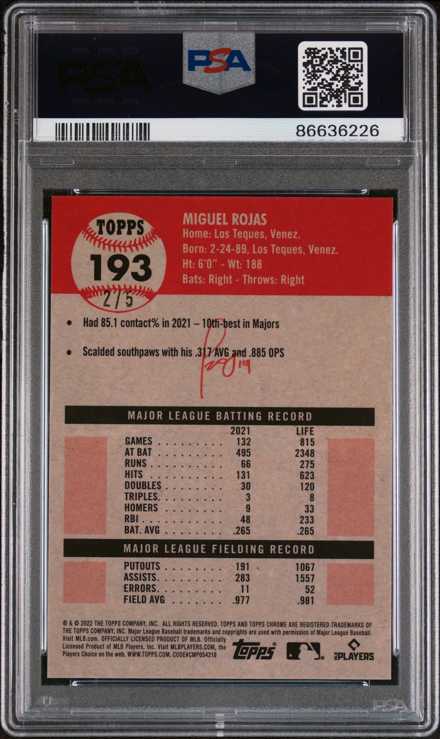 2022 TOPPS CHROME PLATINUM MIGUEL ROJAS RED REFRACTOR #193 - PSA 10