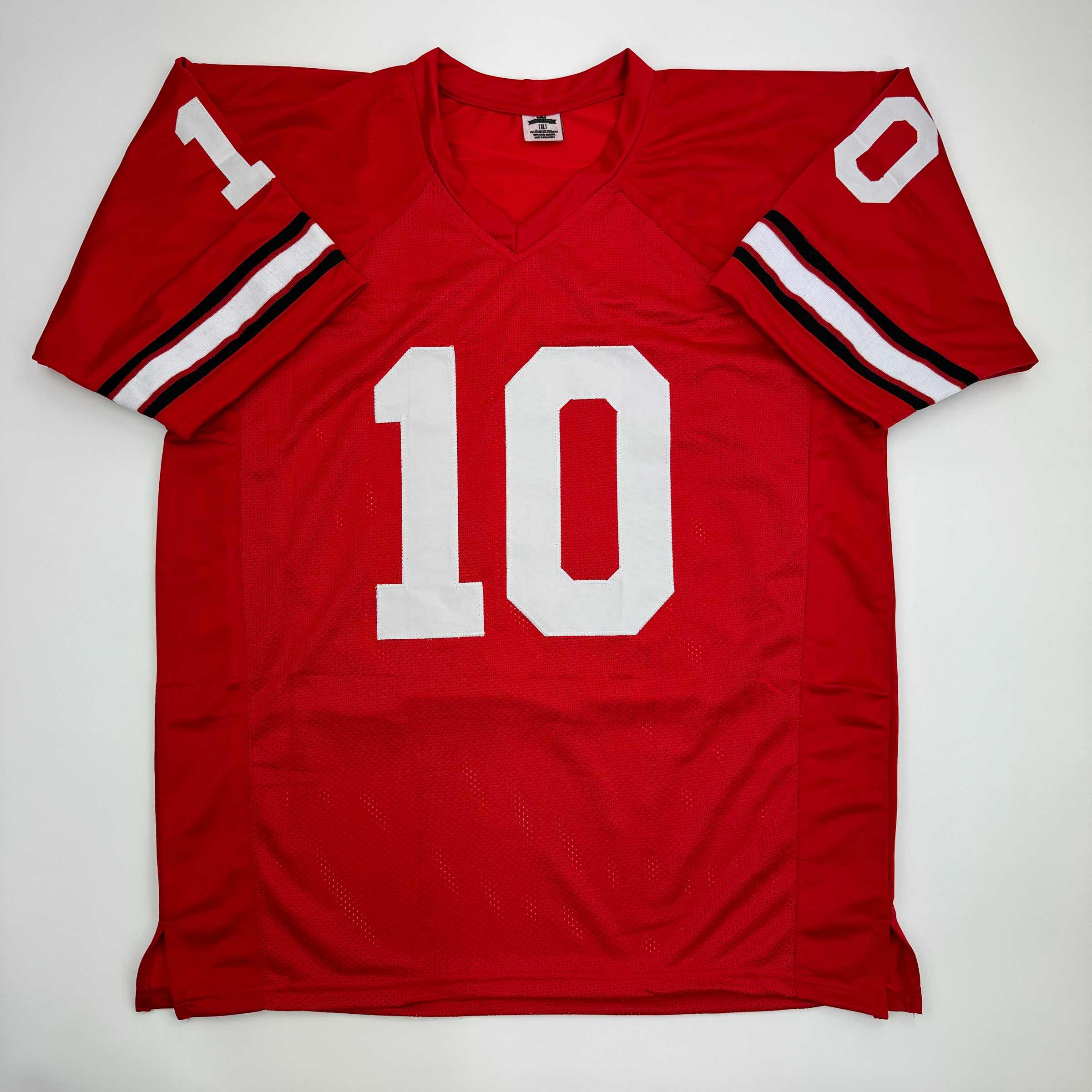 Autographed/Signed Fran Tarkenton Georgia Red College Football Jersey Beckett BAS COA