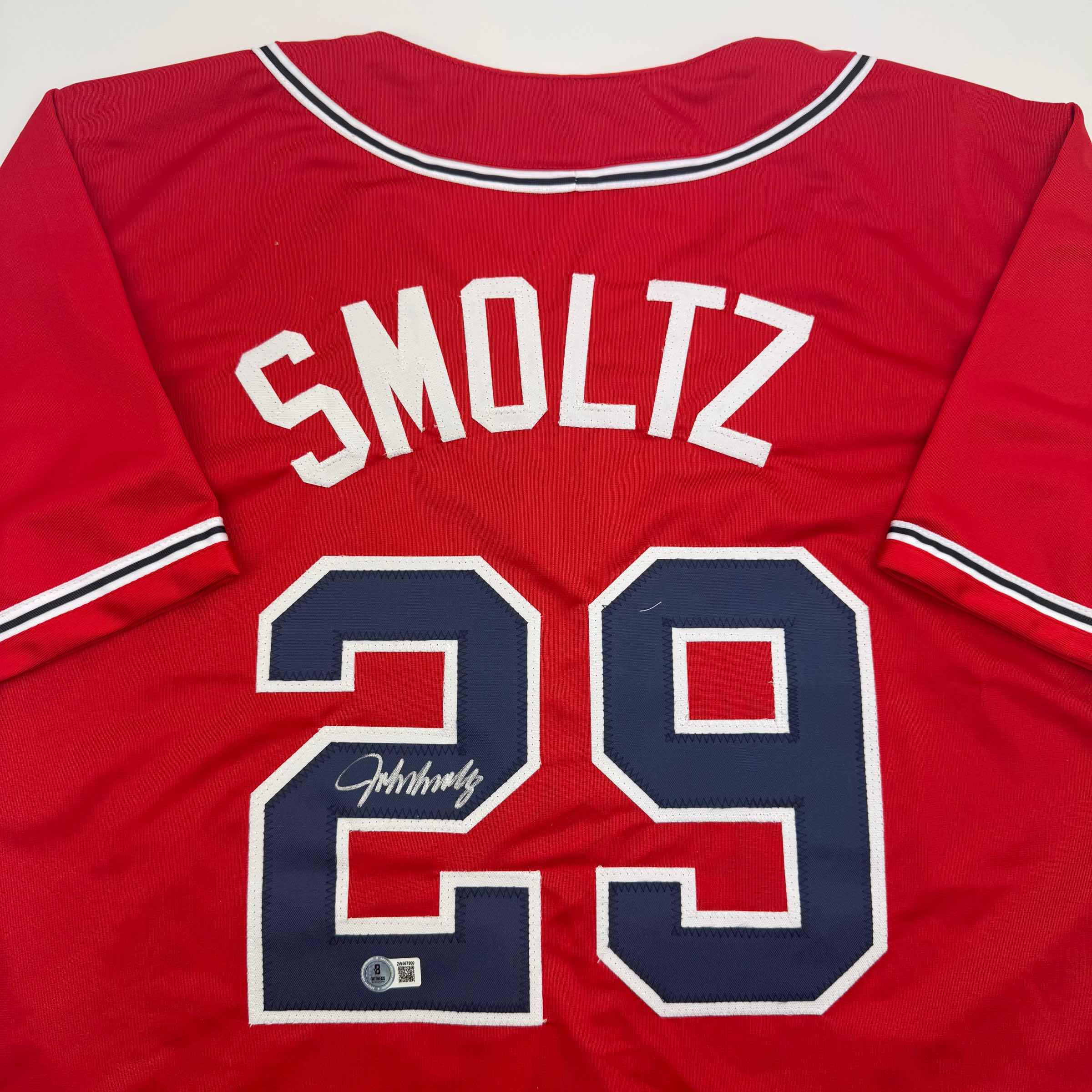 Autographed/Signed John Smoltz Atlanta Red Baseball Jersey Beckett BAS COA