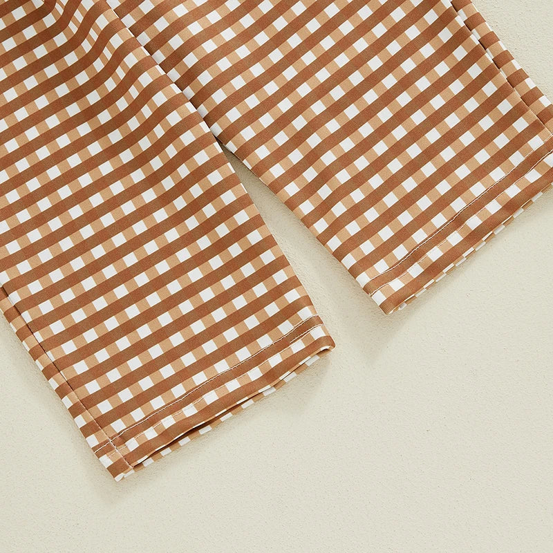 Baby Toddler Boys 2Pcs Fall Set Football Embroidered Long Sleeve Round Neck Top With Plaid Long Pants Outfit