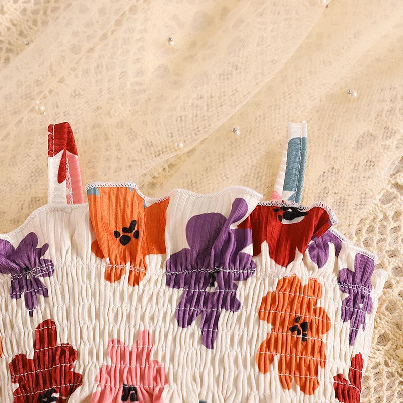 Baby Toddler Kids Girls 2Pcs Summer Sleeveless Tank Top Ruched Floral Flower Print Camisole Flared Matching Long Pants Set Outfit