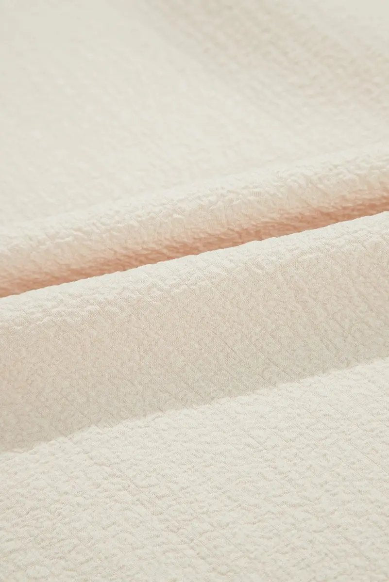 Elevate your everyday wardrobe with this beige textured blouse. Crafted from a comfortable blend of 95% polyester and 5% elastane, it offers a soft yet structured feel with a flattering stretch. The neutral beige color easily pairs with denim, skirts, or tailored pants.