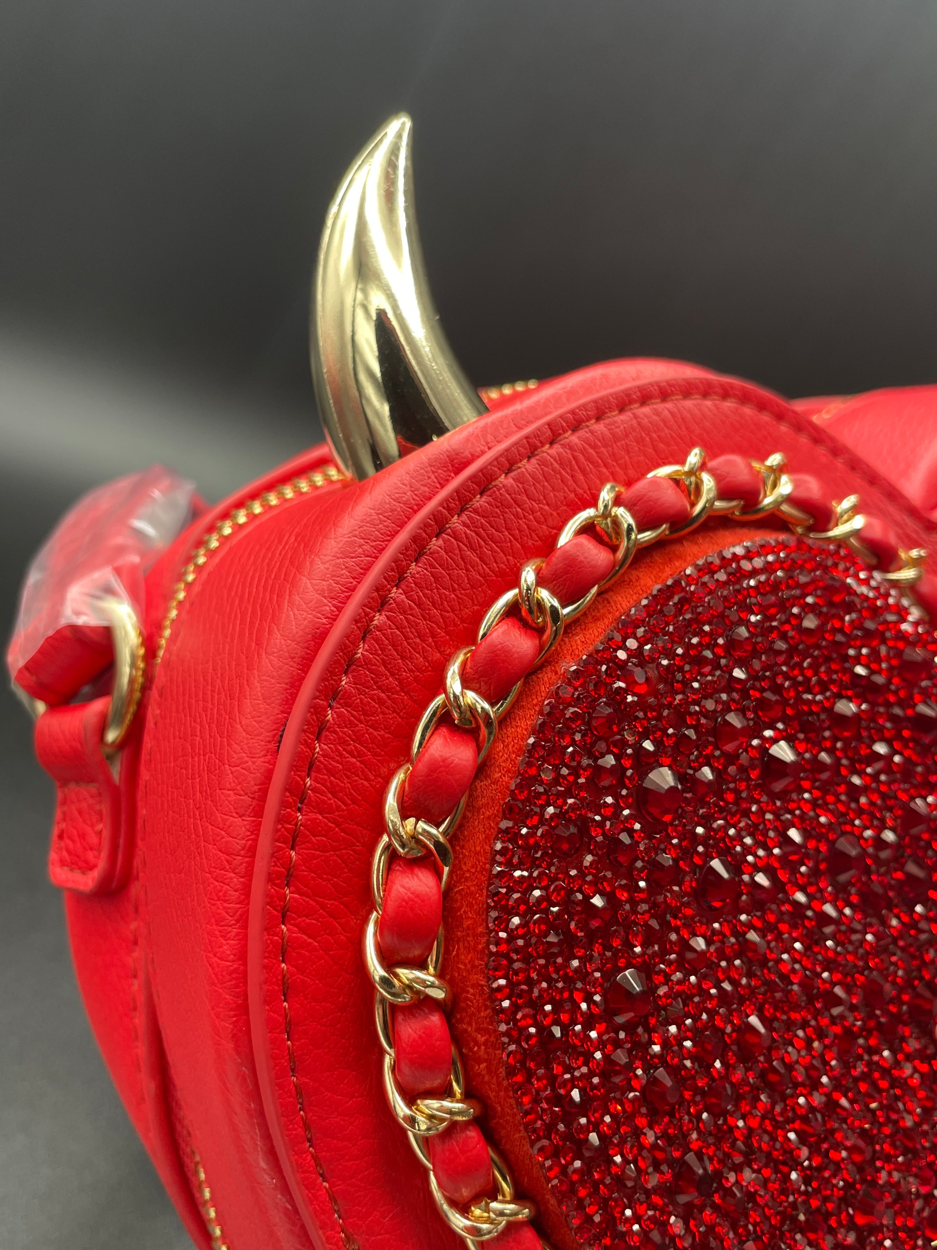 This KITSCH DEVIL IN THE DETAILS heart-shaped crossbody will definitely give any outfit a saucy flare! You'll love the devilish heart detail that adds an eye-catching touch to this classic bag.