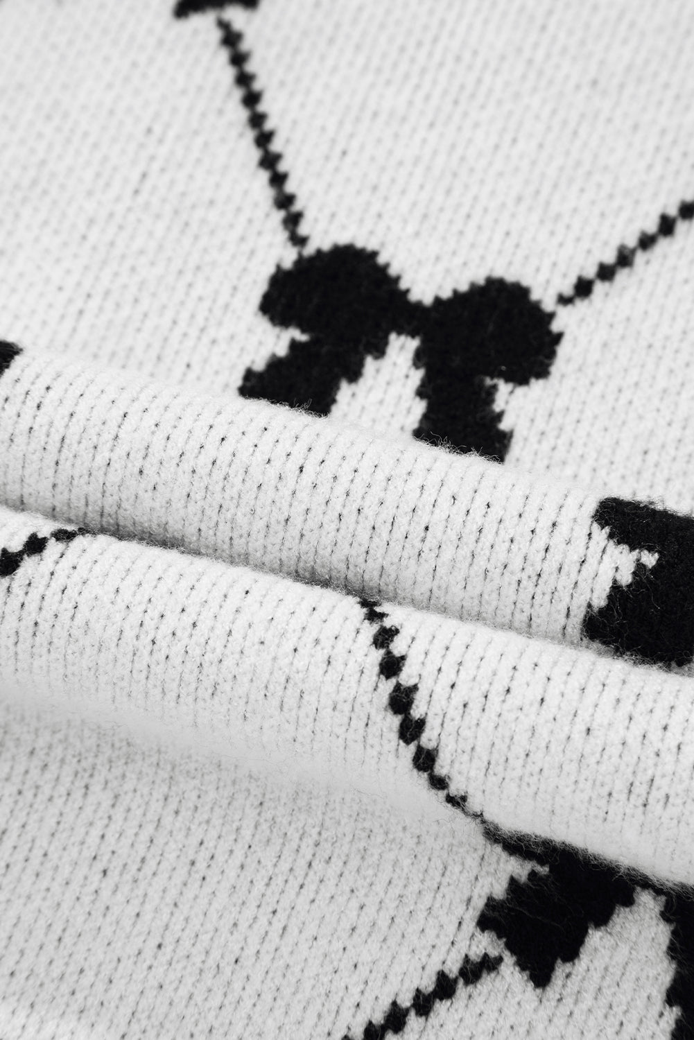 Bow Colorblock Quarter-Zip Collared Sweater ‐ Black / S
