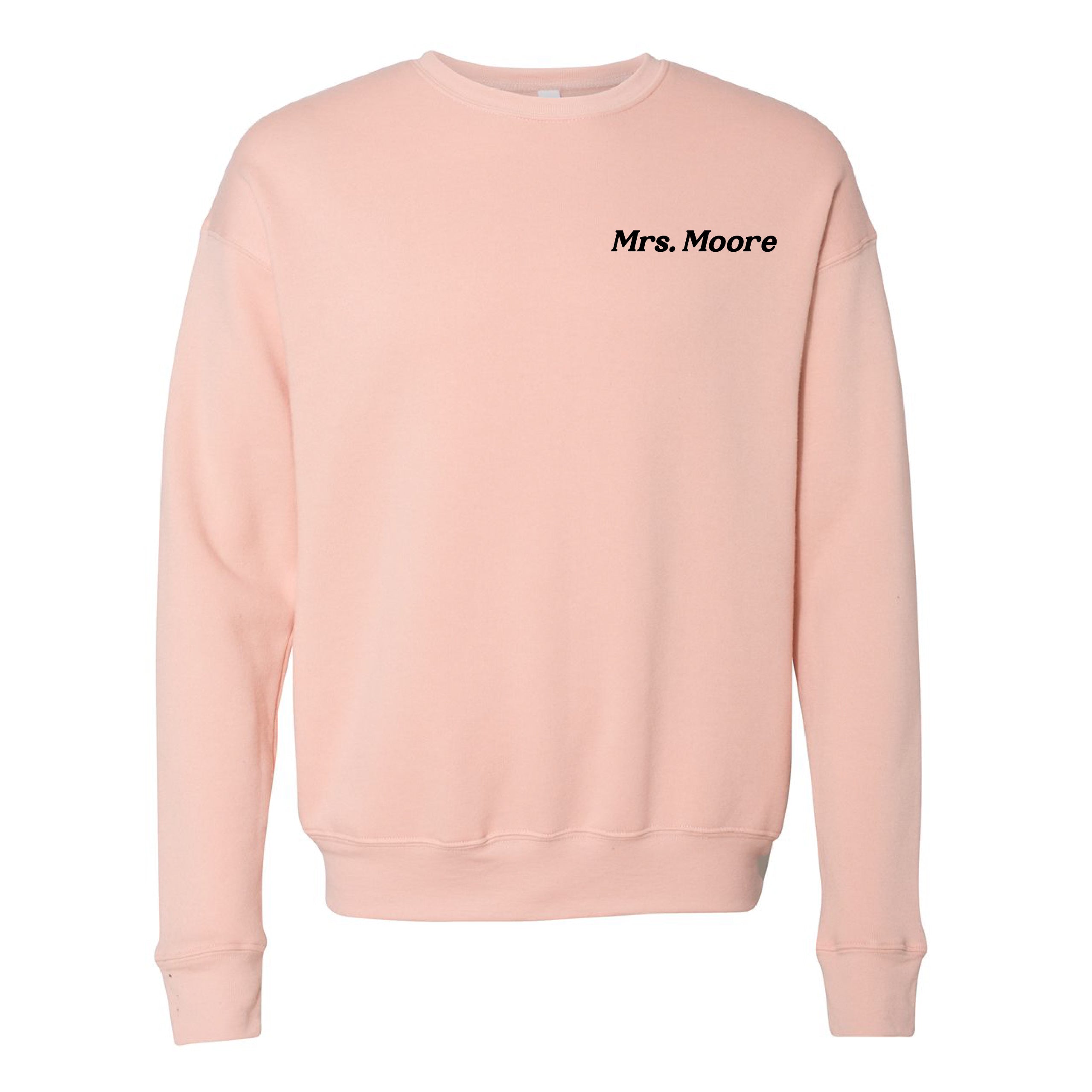 CUSTOM TEACHER SWEATSHIRT - Embroidered SUPER-SOFT Fleece - (Enter Your Custom Name) ‐ S / Blush w/ Black Thread