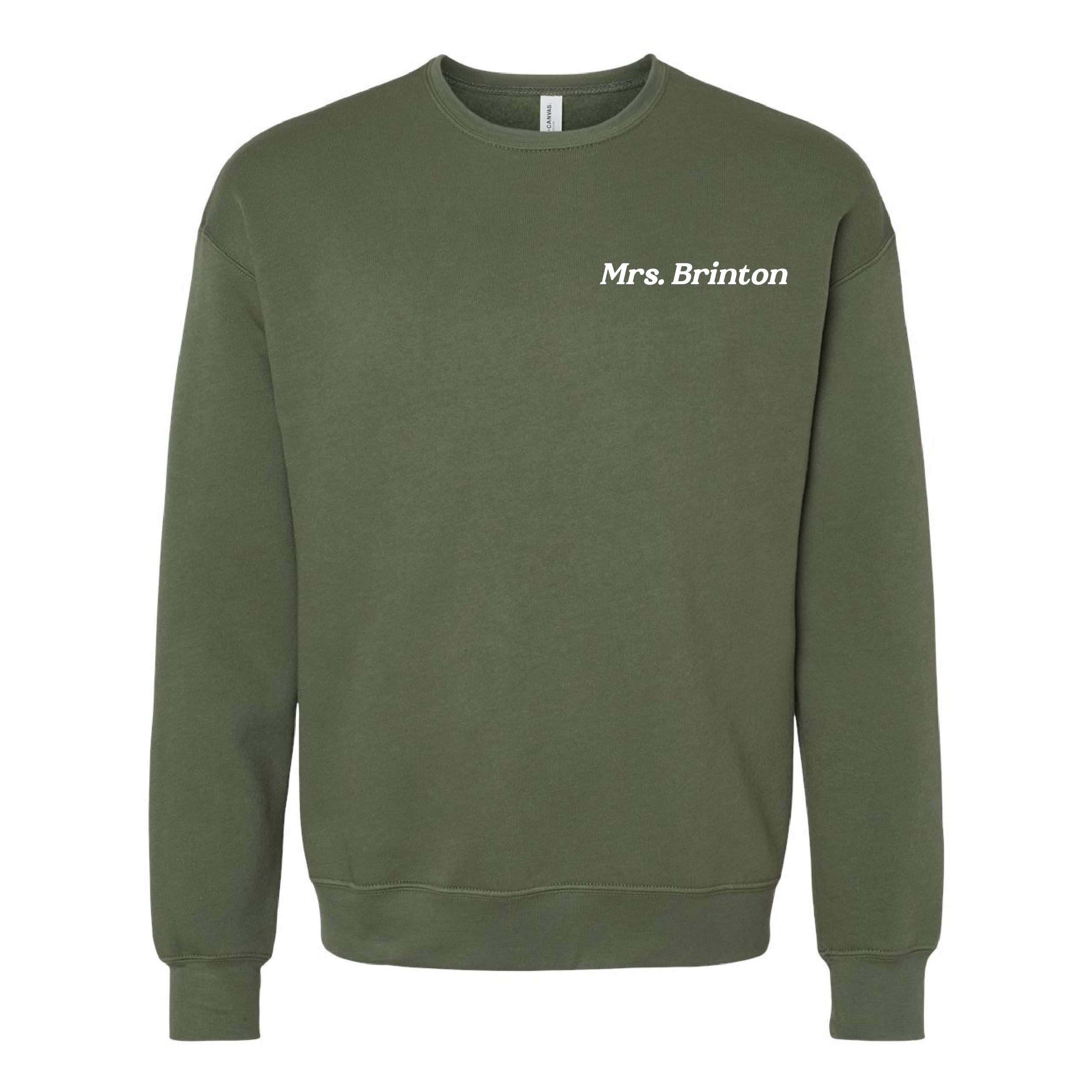 CUSTOM TEACHER SWEATSHIRT - Embroidered SUPER-SOFT Fleece - (Enter Your Custom Name) ‐ L / Military Green w/ White Thread