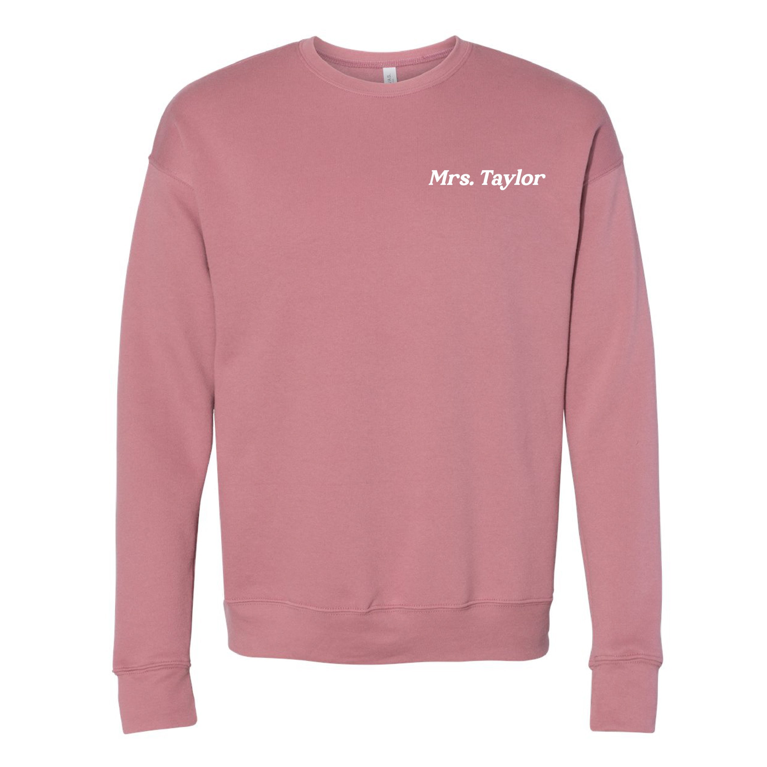 CUSTOM TEACHER SWEATSHIRT - Embroidered SUPER-SOFT Fleece - (Enter Your Custom Name) ‐ S / Mauve w/ White Thread