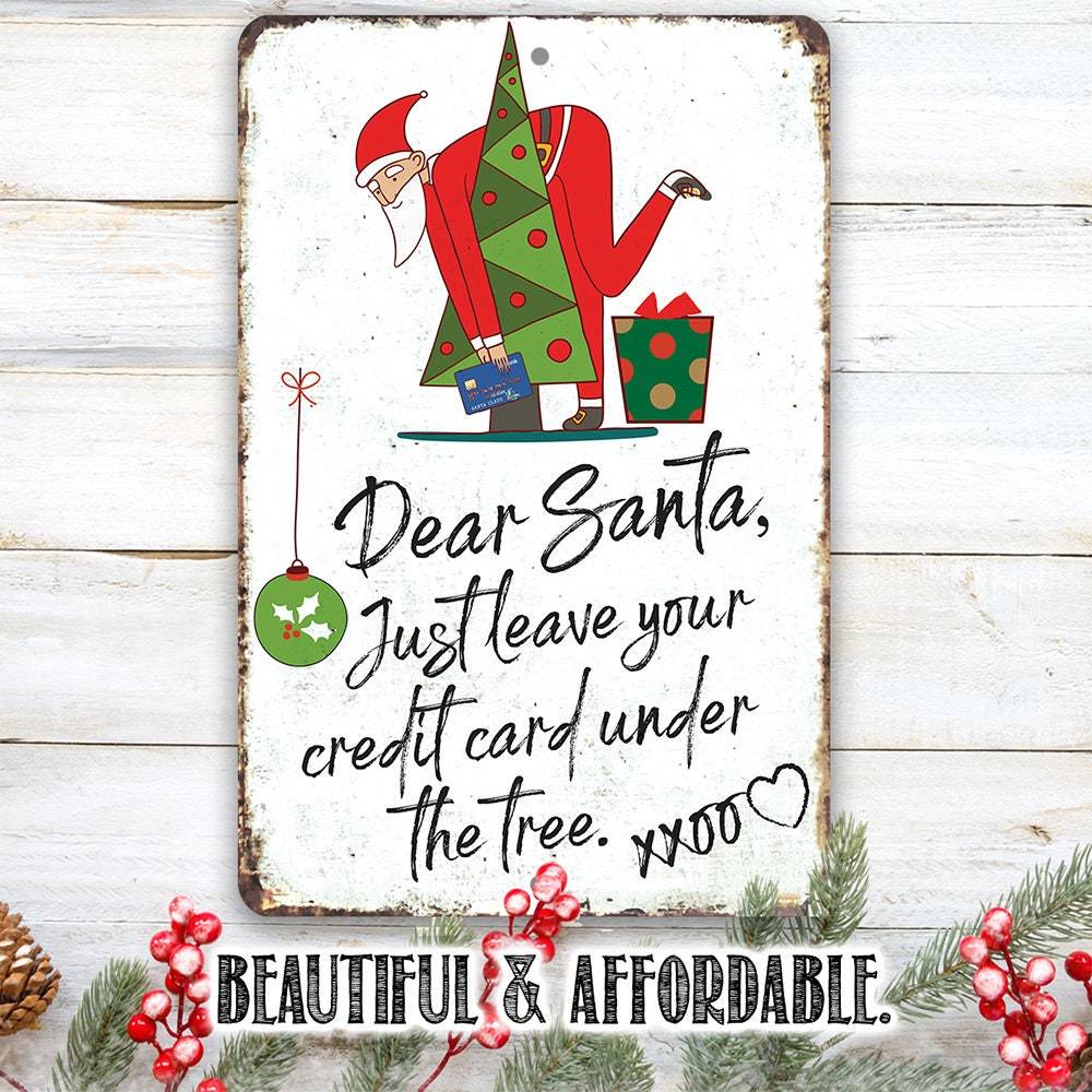 Dear Santa Just Leave Your Credit Card - Metal Sign ‐ 12 x 18