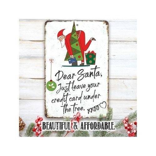 Dear Santa Just Leave Your Credit Card - Metal Sign ‐ 8 x 12