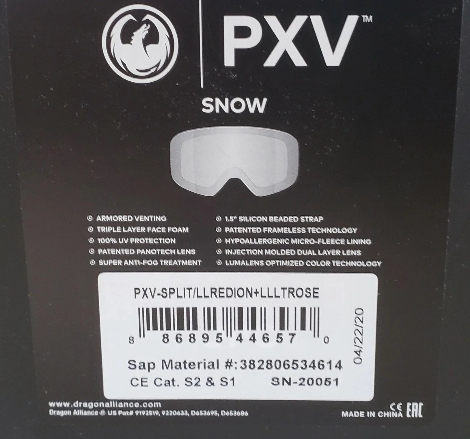 DRAGON PXV Goggles LumaLens Bonus Lens Included PXV-SPLIT/LLRE