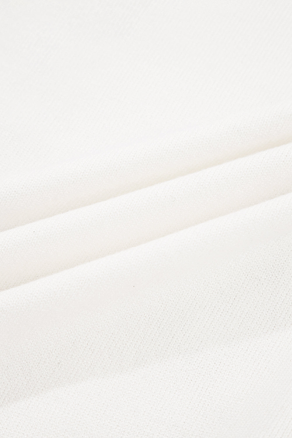 Floral Embroidered Scallop Hem Sweater ‐ White / XL