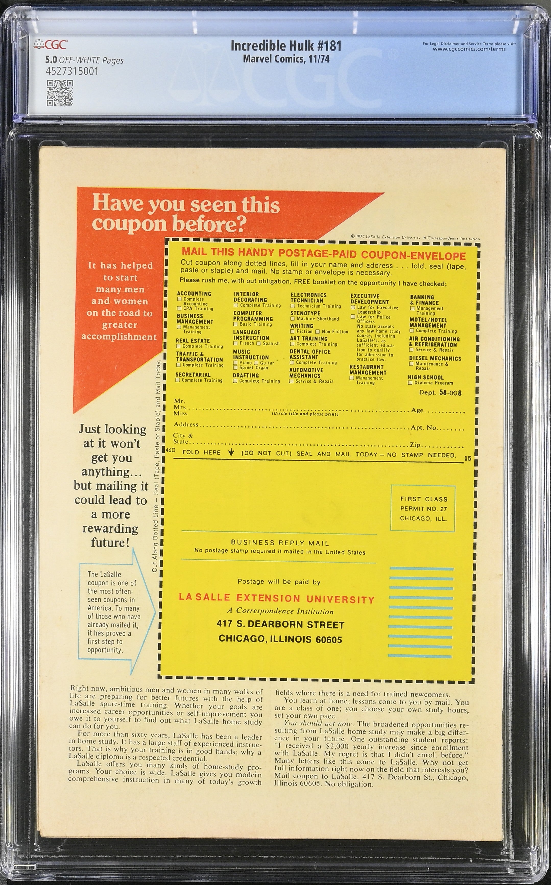Incredible Hulk #181 (11/74) Graded CGC 5