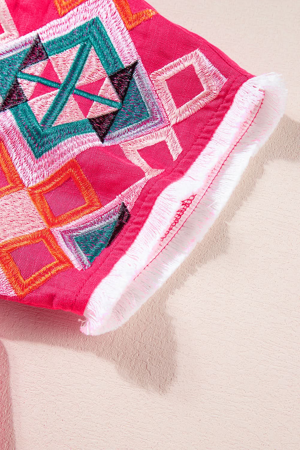 Love Salve Strawberry Pink Geometric Embroidered Tassel Tie V ‐ Strawberry Pink / S / 100%Cotton
