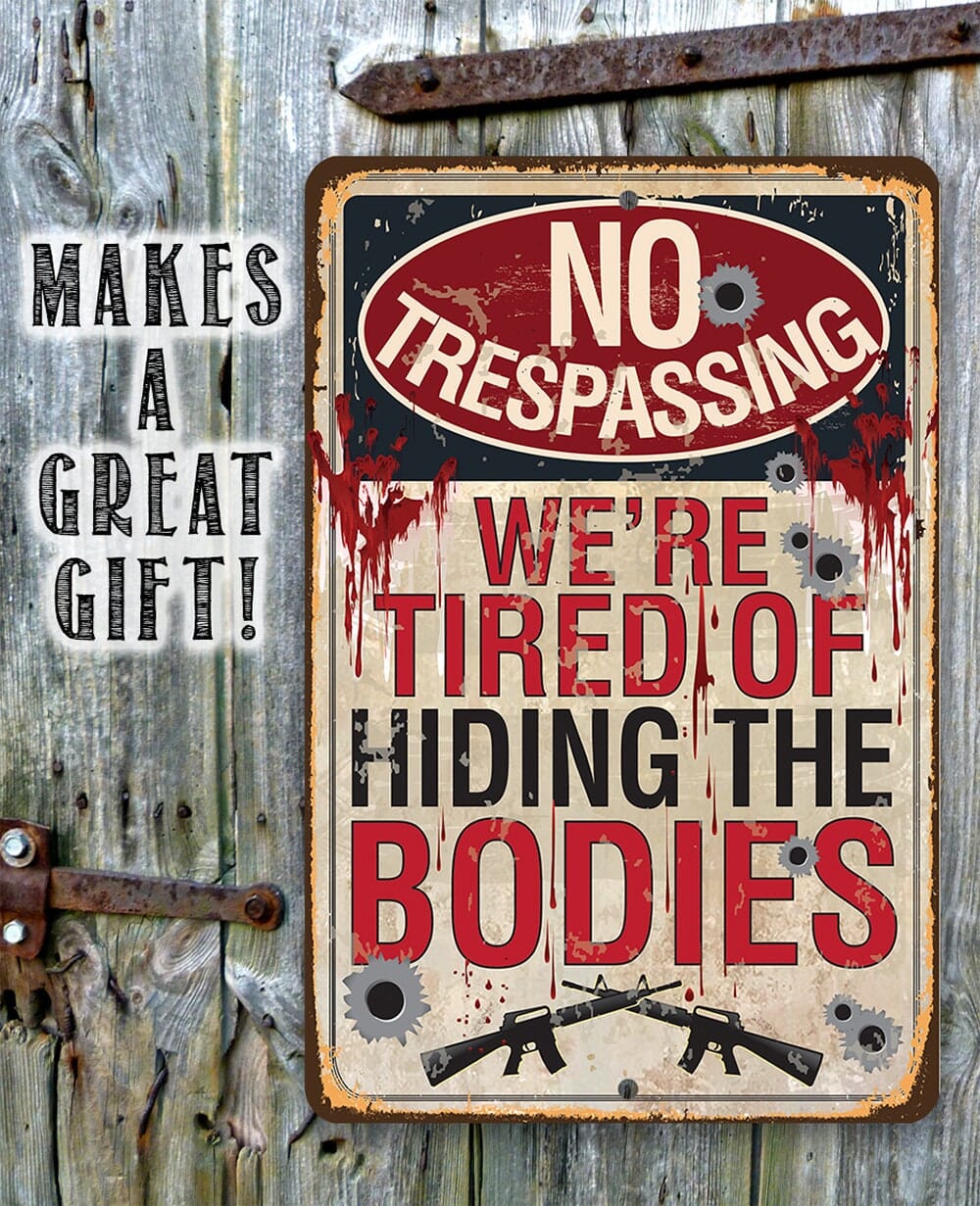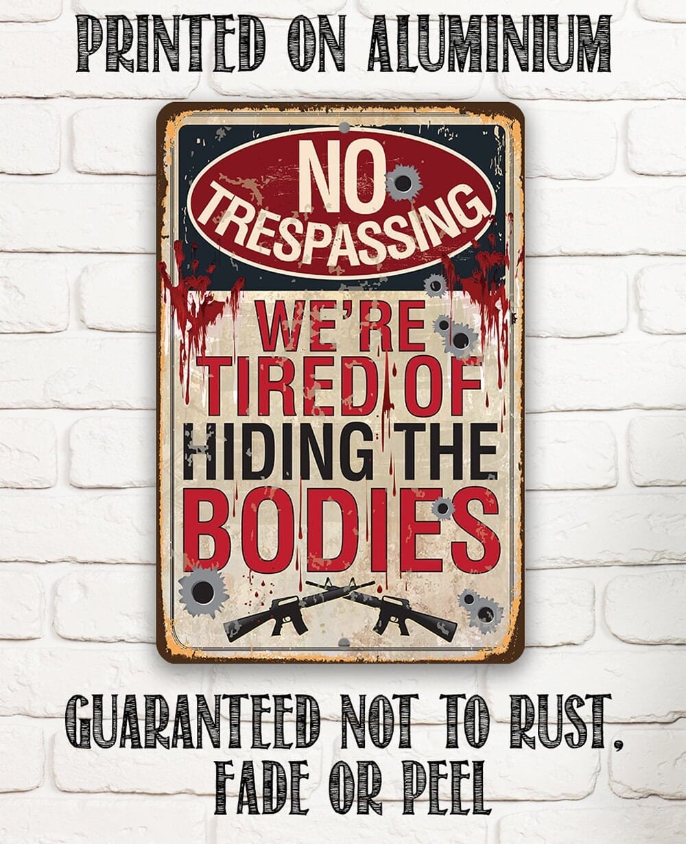 No Trespassing Tired of Hiding The Bodies - Metal Sign ‐ 8 x 12