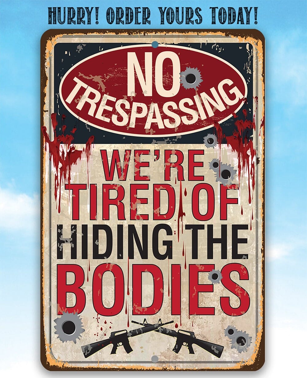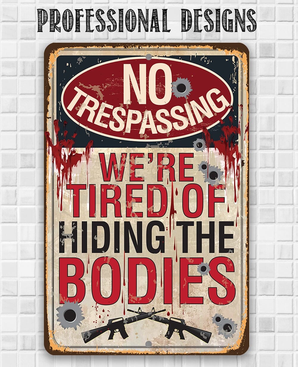 No Trespassing Tired of Hiding The Bodies - Metal Sign ‐ 12 x 18