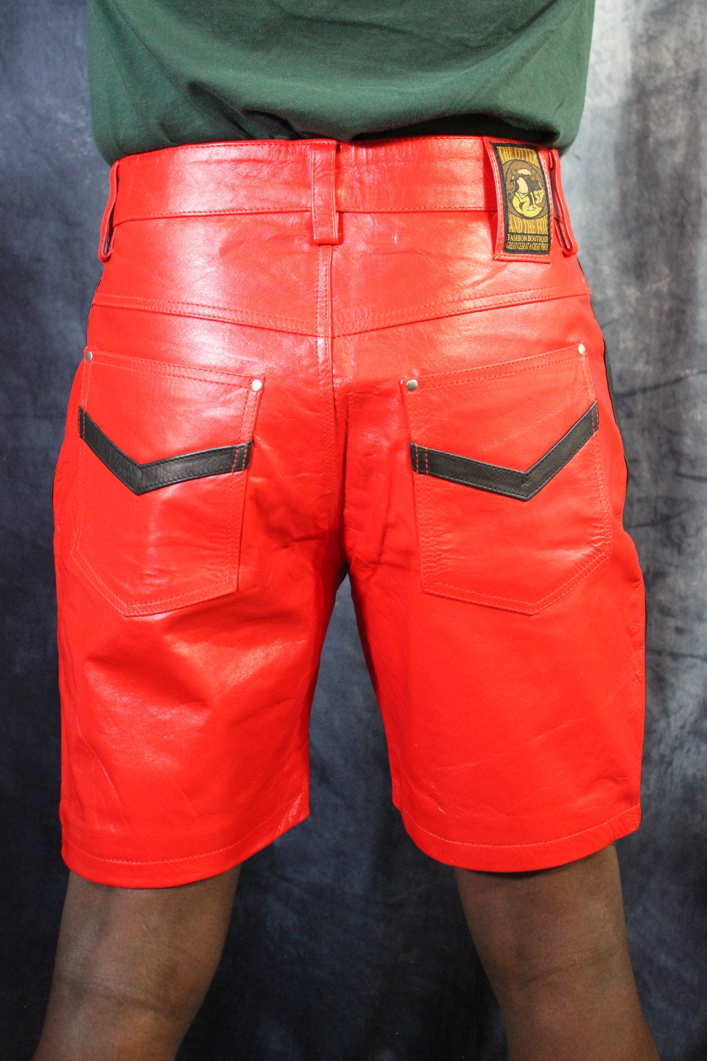 Leather is hot but keep cool while enjoying your love of leather with our new leather chevron shorts by The Otter and The Fox! These shorts are modeled after classic Jean shorts, with an extra 'chevron' highlight on the back pockets. These wonderfully crafted leather shorts come in a variety of colors and sizes to fit your desired look!