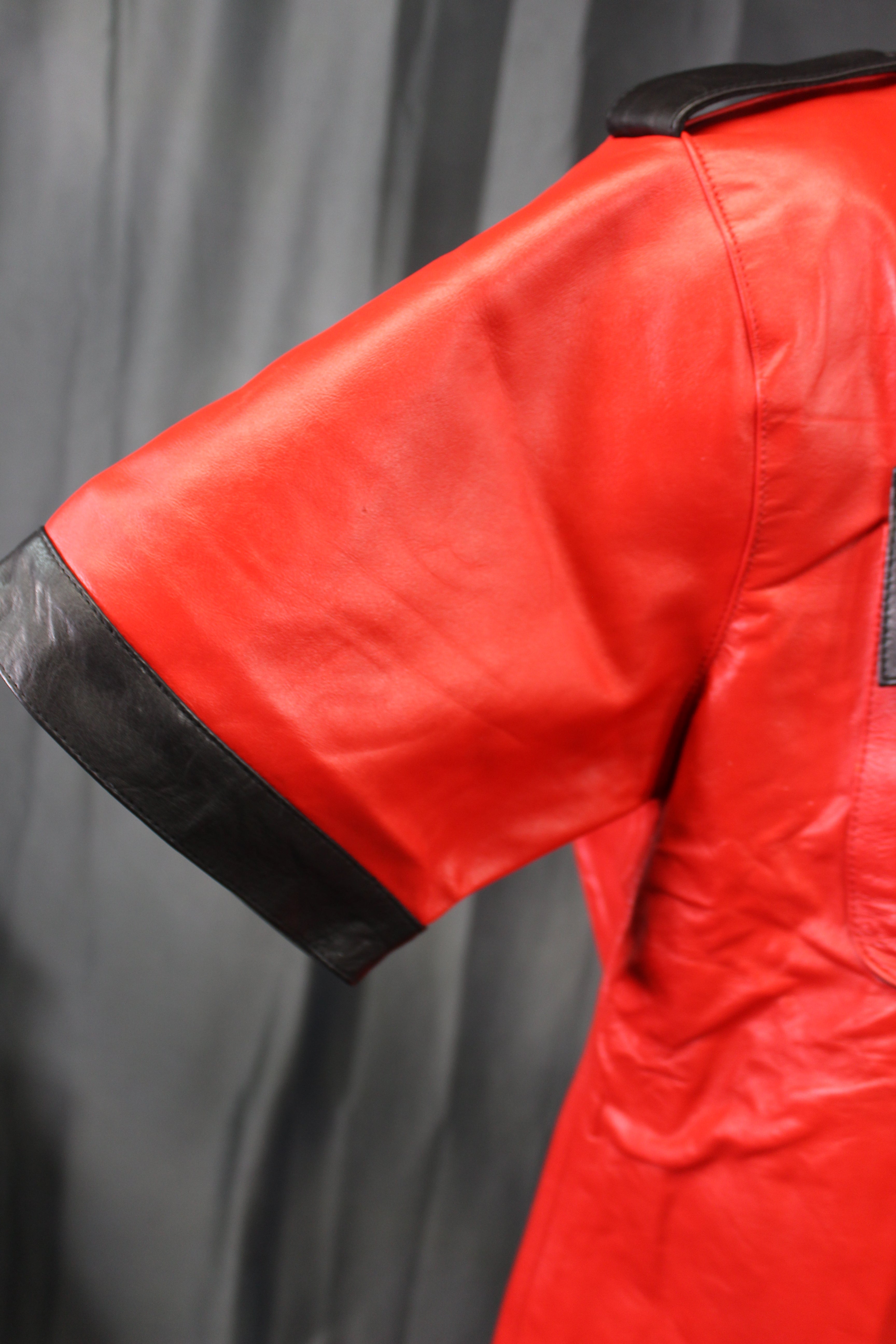 OnF Leather Shirts in Red with Black Highlights ‐ X-Small