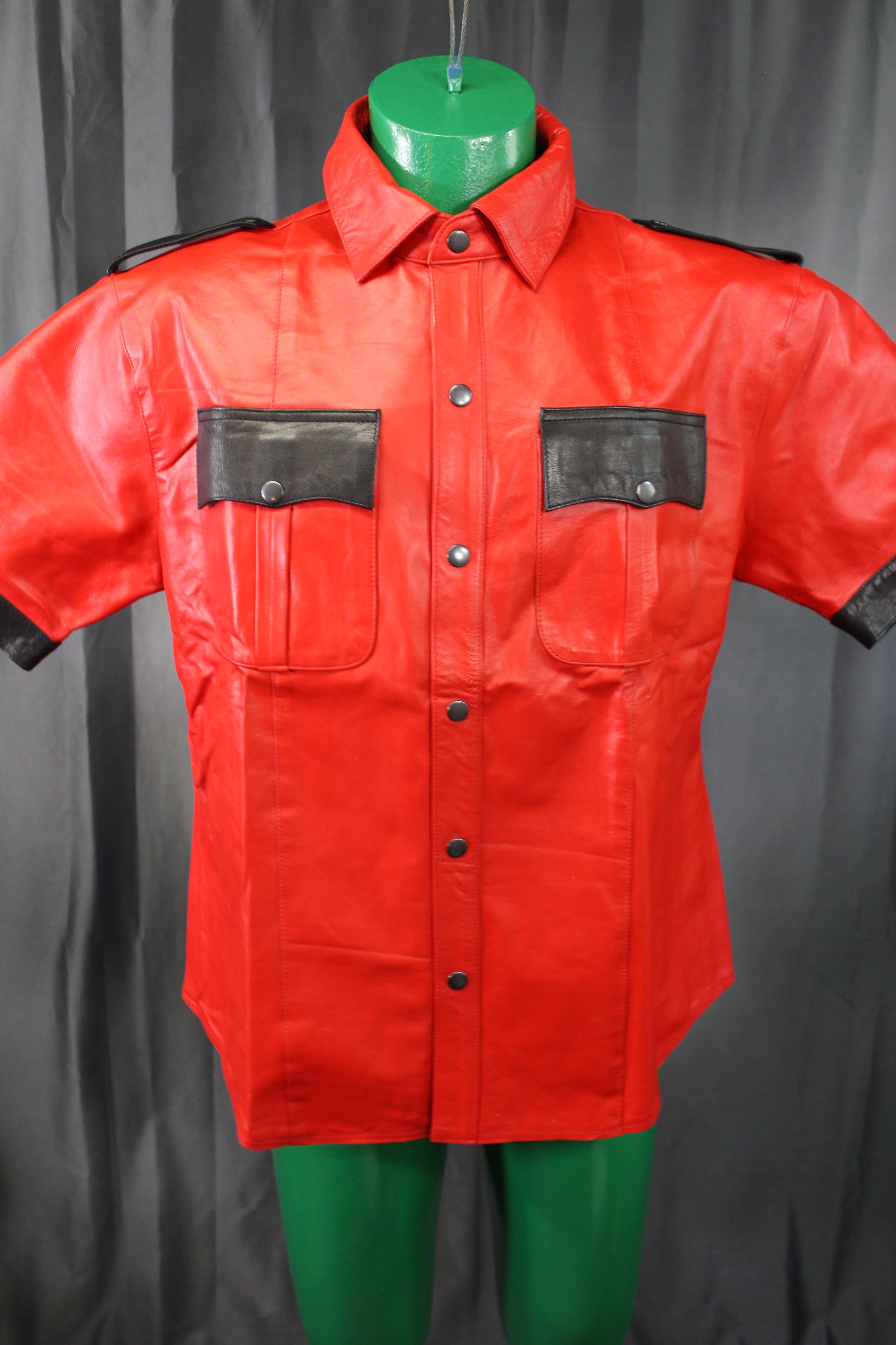 OnF Leather Shirts in Red with Black Highlights ‐ XX-Small