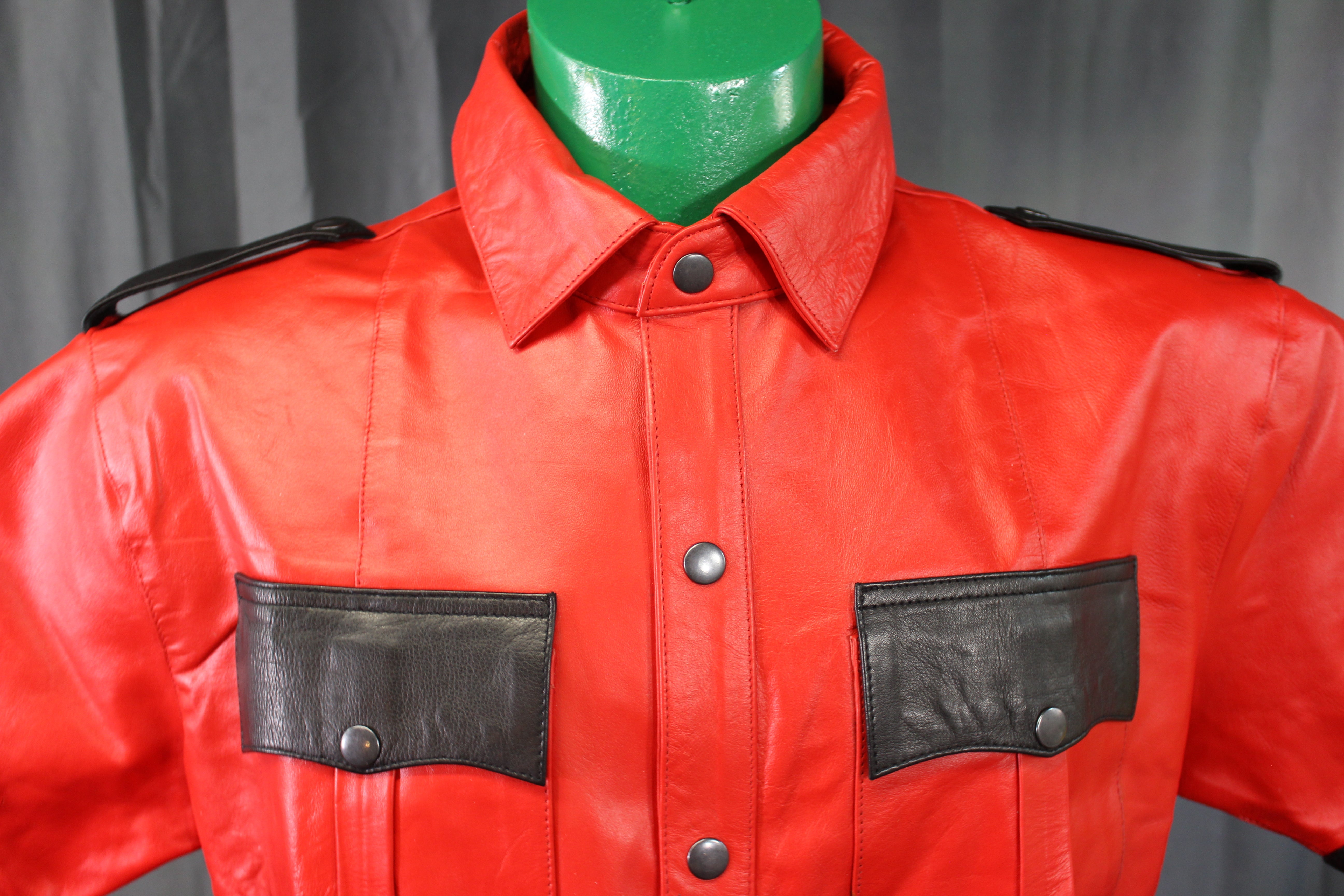 OnF Leather Shirts in Red with Black Highlights ‐ X-Large