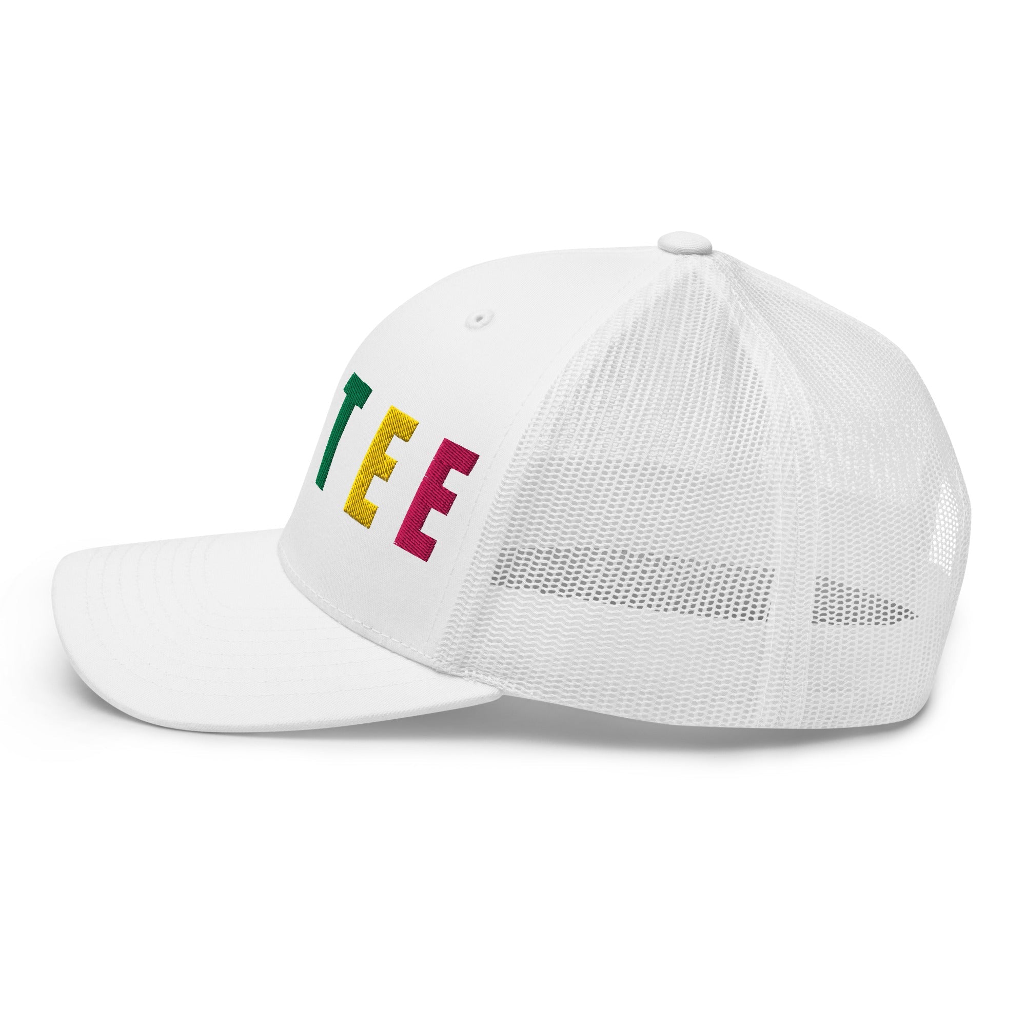 This six-panel trucker hat brings colorful style to your golf game with PARTEE stitched in vibrant embroidery across the front. Designed for all-day comfort, it features a breathable mesh back, curved brim, and a classic structured fit that’s ready for sunshine and good vibes.