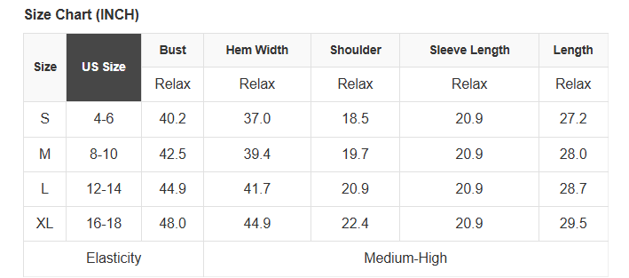 See size chart for approximate measurements.
