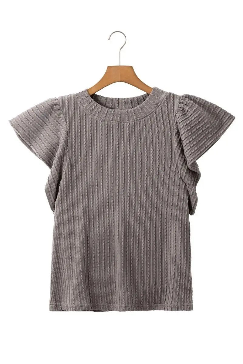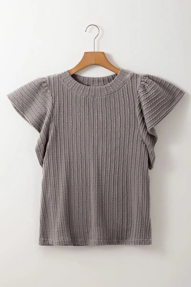 Love Salve Textured Top Women's Casual Chic Flutter Sleeve Top Elegant, Solid Color ‐ Sleet / L / 95%Polyester+5%Elastane