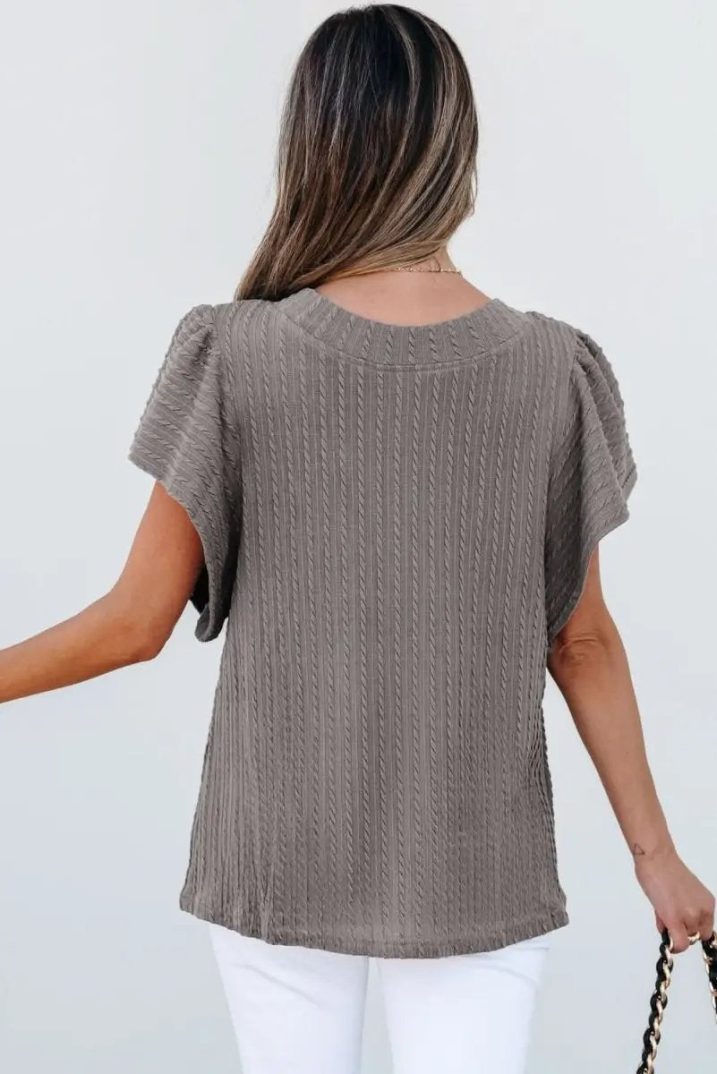 Love Salve Textured Top Women's Casual Chic Flutter Sleeve Top Elegant, Solid Color ‐ Sleet / M / 95%Polyester+5%Elastane