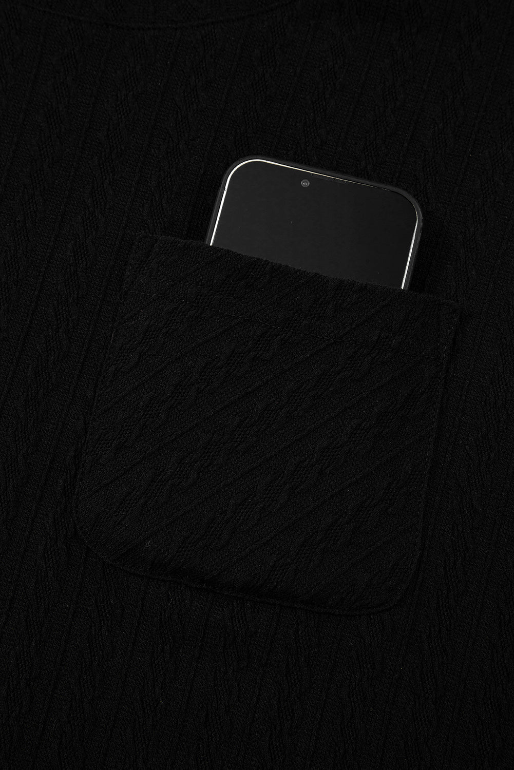 Textured Chest Pocket Top and Pants Set ‐ Black / M