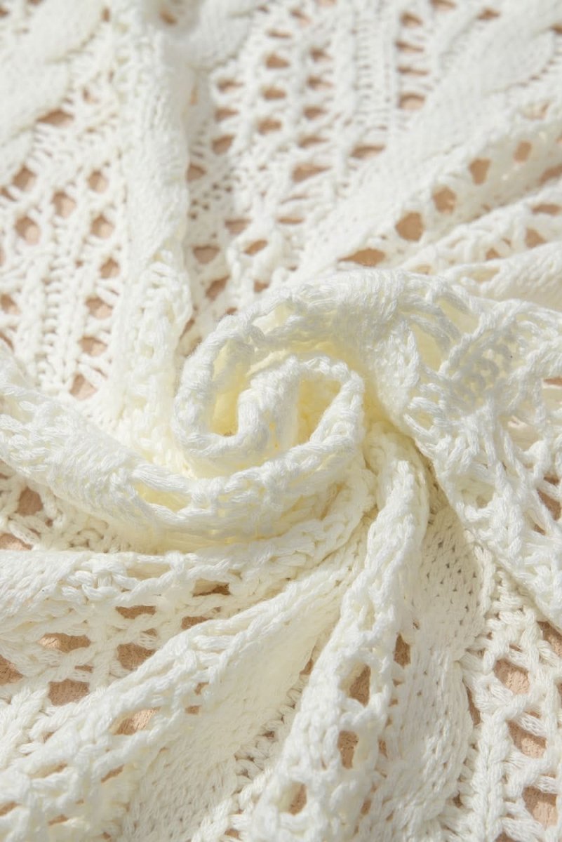 Chic White Knit Hooded Beach Cover-Up for Trendy Summer Style ‐ White / S / 100%Acrylic
