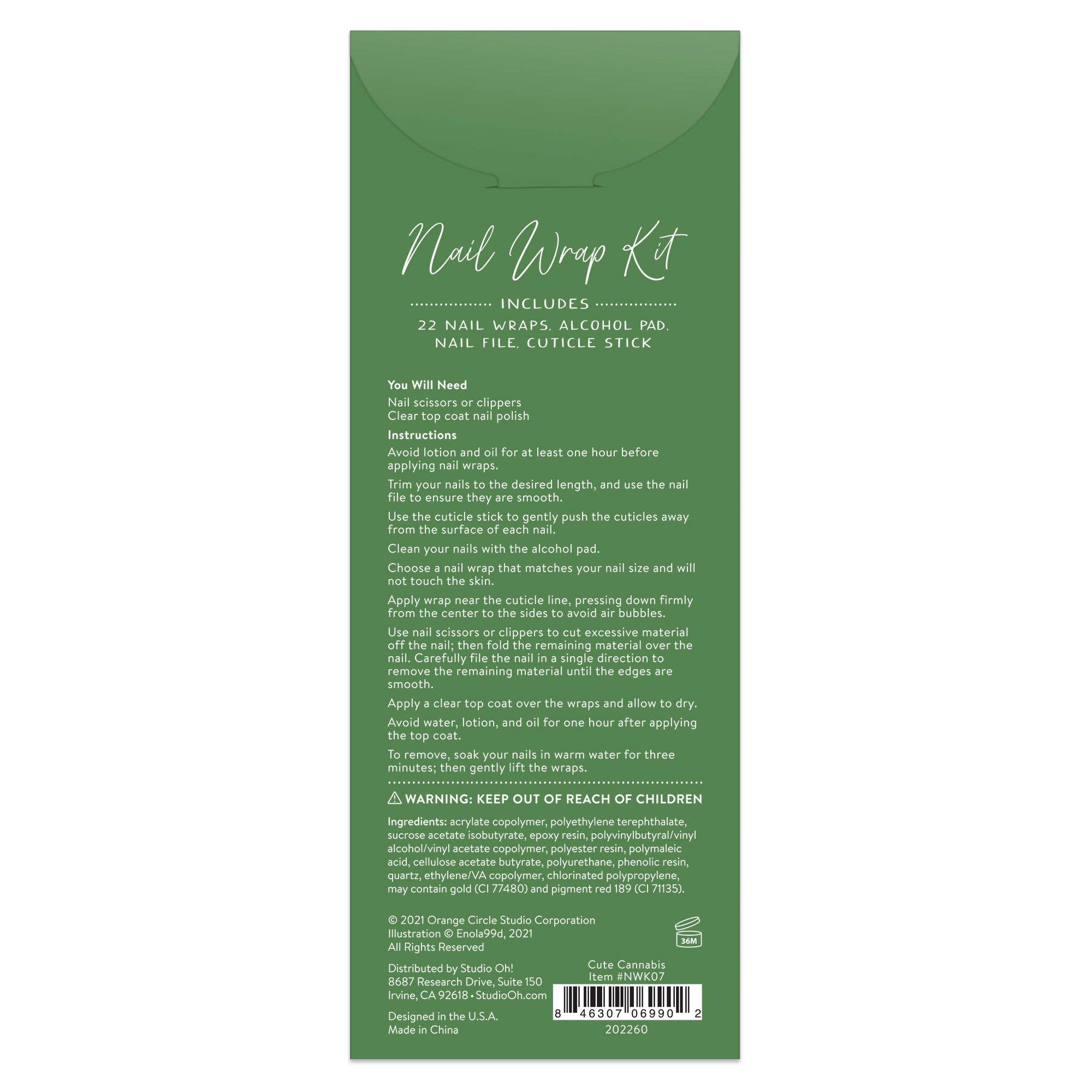 Cute Cannabis Nail Wrap Kit | Nail Care Arts Tools Accessories | On-the-go Travel Kit