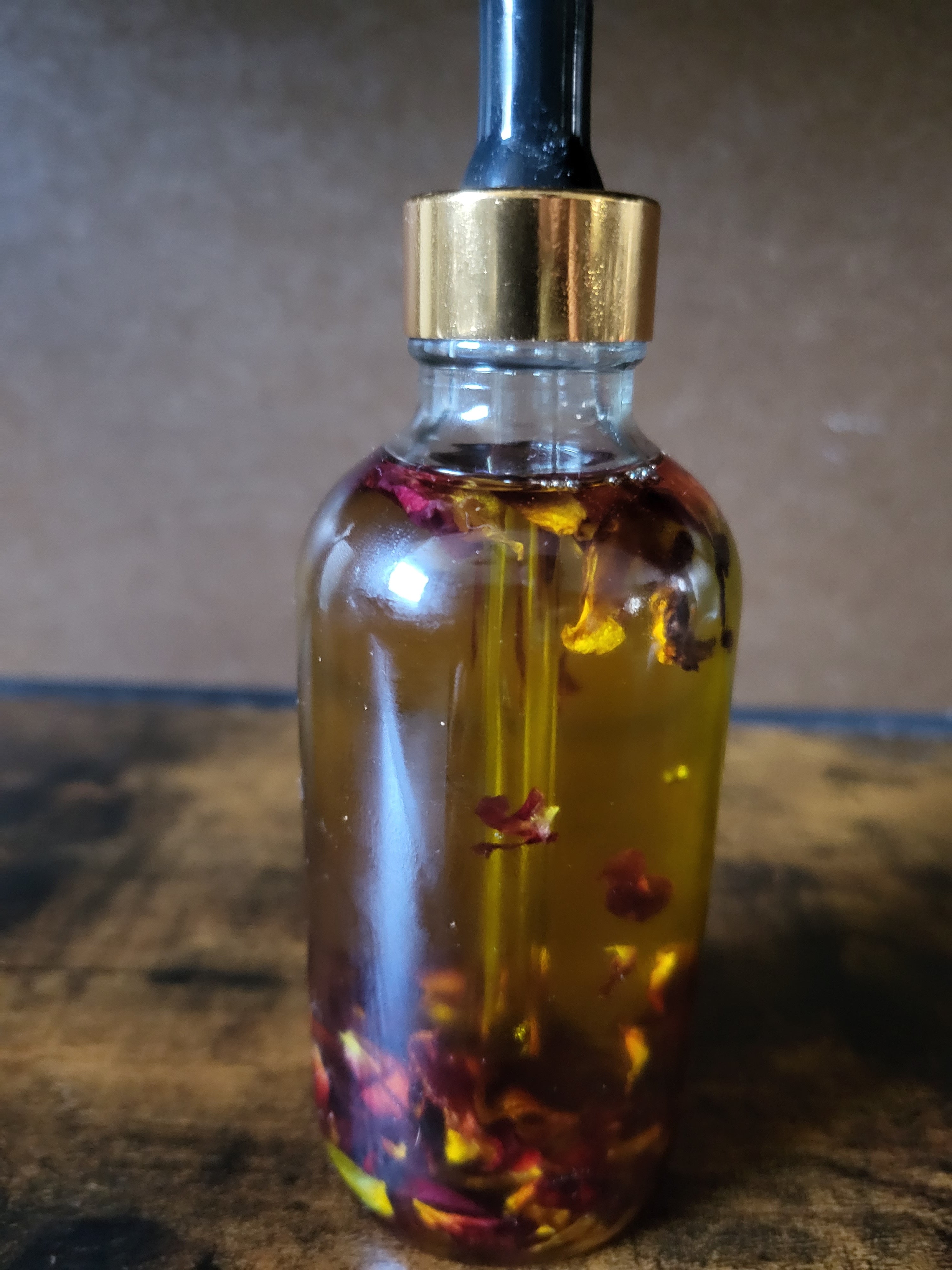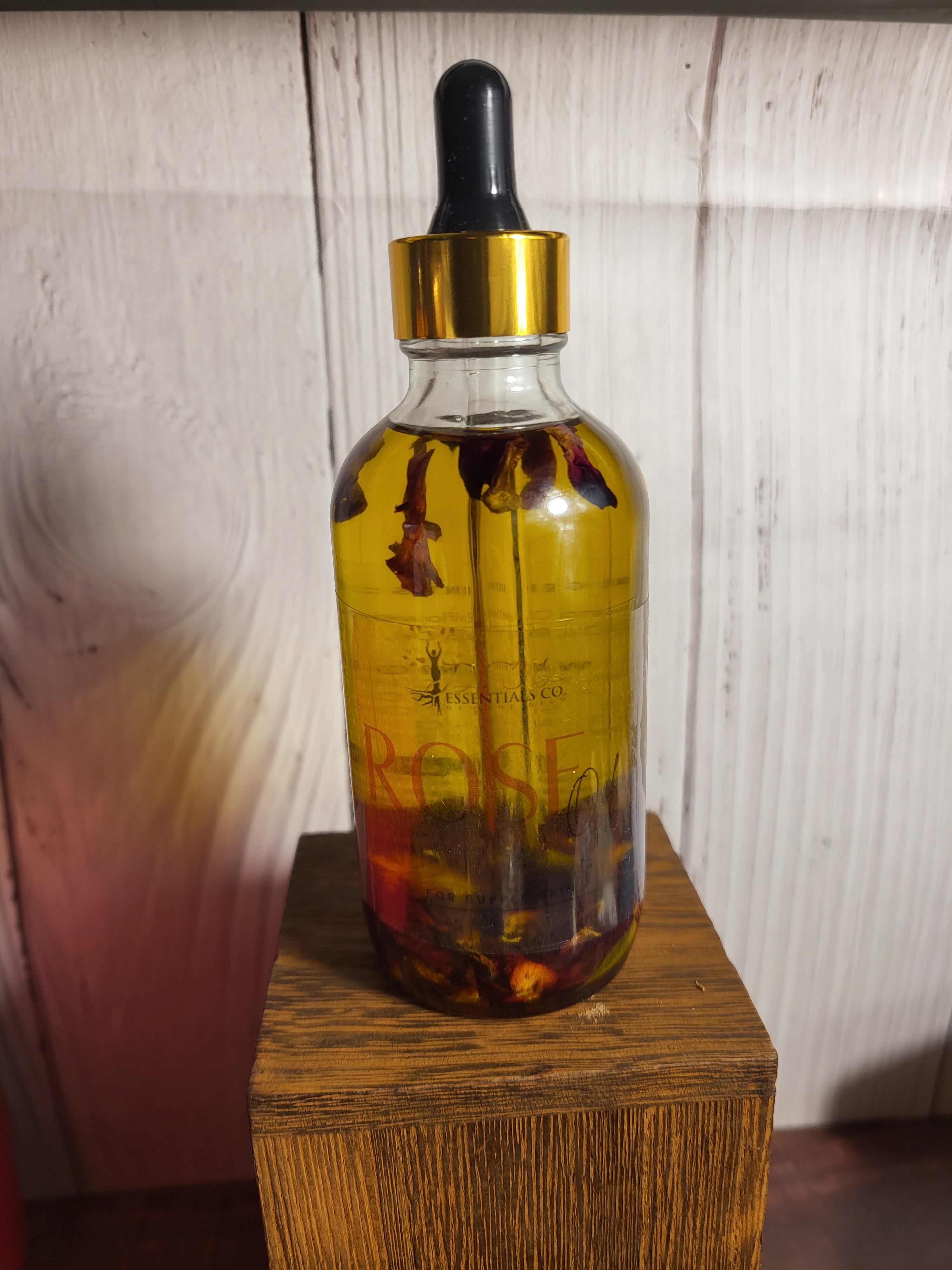 Rose Oil is a handmade skincare product made with dried roses and Grade A oils and essential oils. It can be used on the face and body, and is known to shrink pores, give a youthful glow, reduce anxiety with its wonderful floral scent, reduce the appearance of scars and stretch marks, dark spots, and more. It can also be used as a facial cleanser to remove stubborn makeup and slow down the aging process