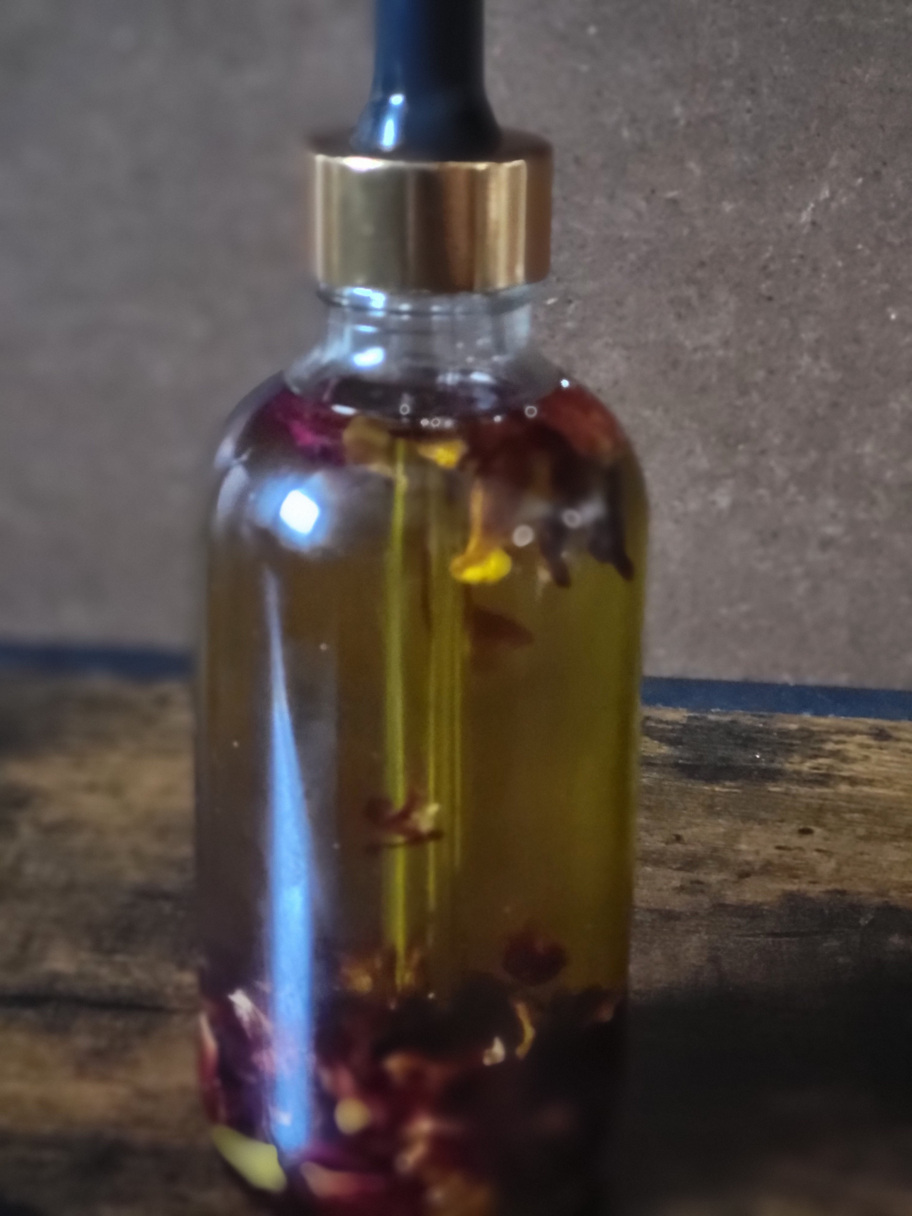 Experience the luxury of Rose Oil, a handmade skincare product created with dried roses, Grade A oils, and essential oils. Perfect for the face and body, this oil contains Organic rose pedals and buds, Avocado oil, sunflower oil, rose hip oil, sweet almond oil, and acai oil. With its amazing floral scent, Rose Oil can reduce anxiety and give a youthful glow while shrinking pores and diminishing the appearance of scars, stretch marks, and dark spots. Use it as a facial cleanser to gently remove makeup and slow down the aging process, restoring elasticity for all skin types. With a shelf life of at least a year, Rose Oil is the ultimate addition to your skincare routine..