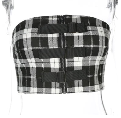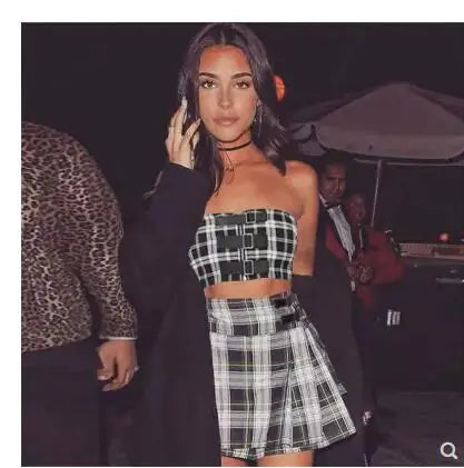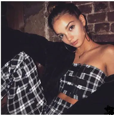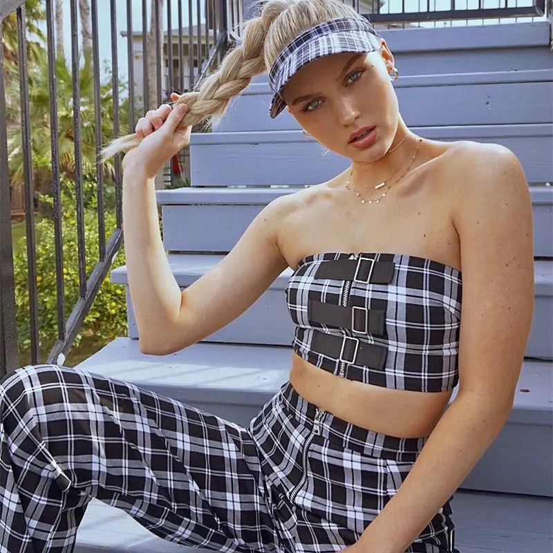 Style Loft Collection Country Club Golf and Tennis Plaid Crop Top and Pants Set ‐ S / Short skirt