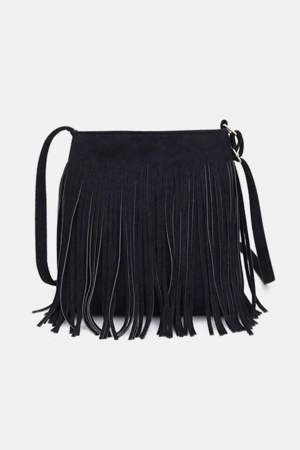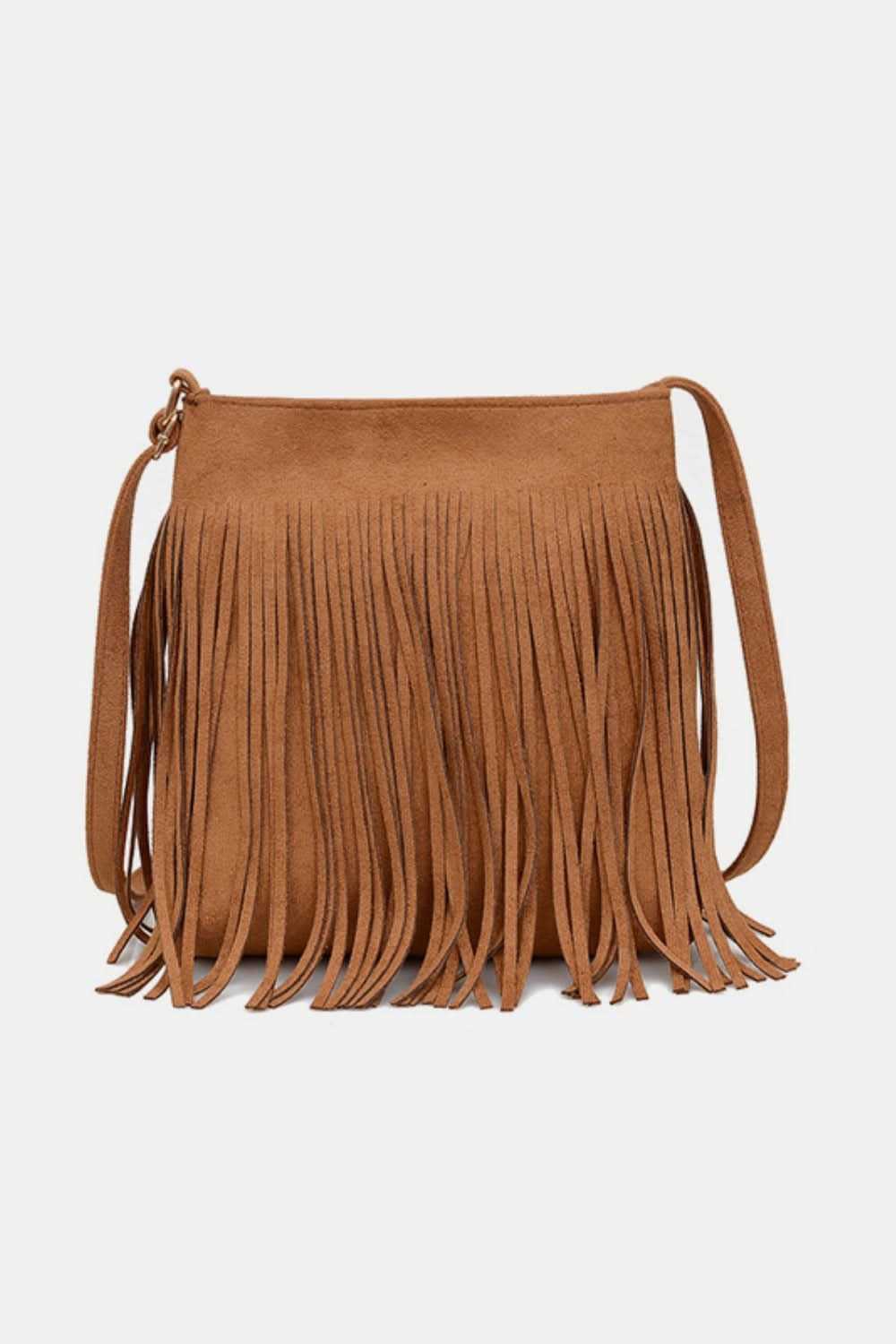 Elevate your style with our Suede Fringe Crossbody Bag. This small yet chic accessory is crafted from luxurious suede, ensuring a sophisticated look for any occasion.