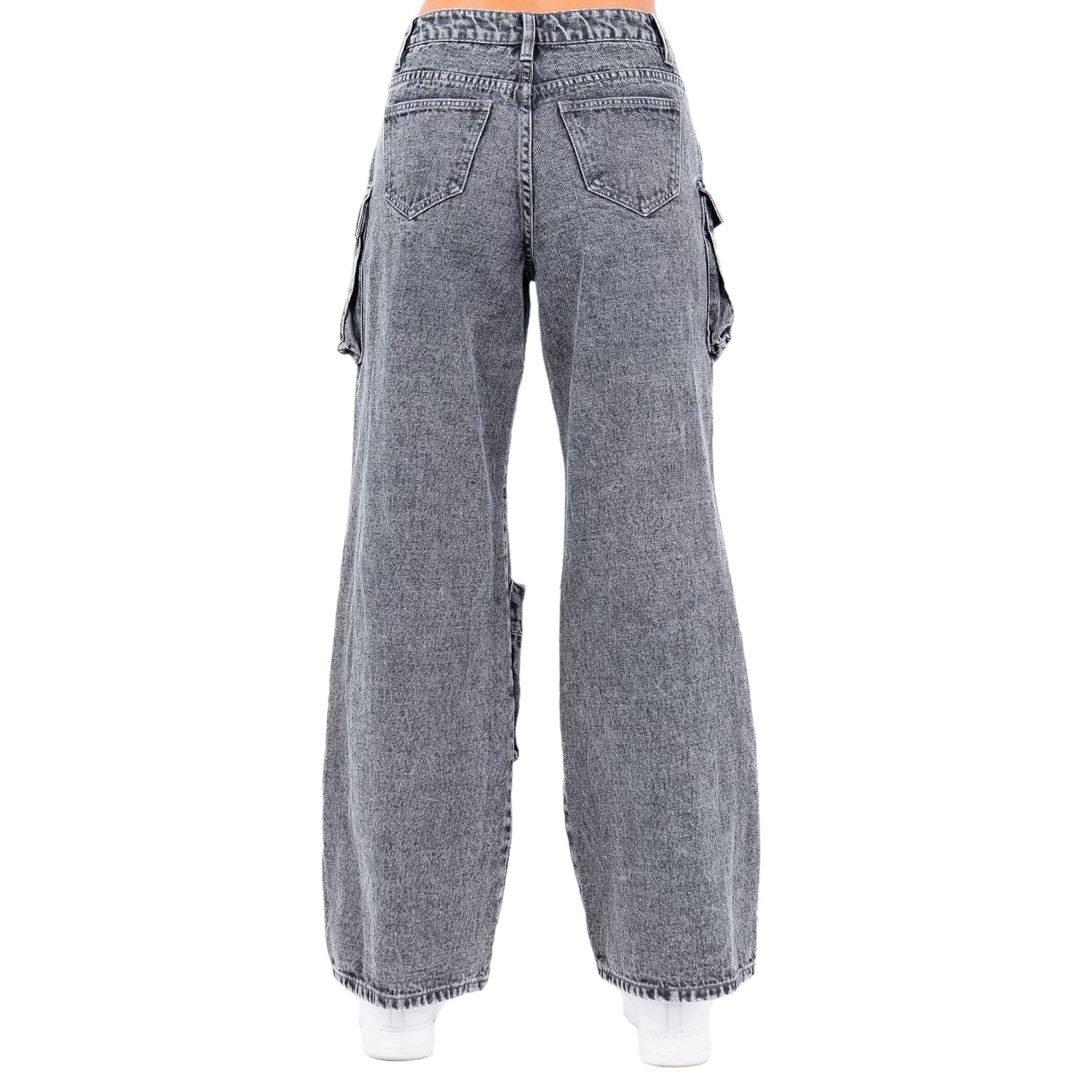 Acid Wash Denim Wide Leg Pocket Pants- RJH30564 ‐ Medium