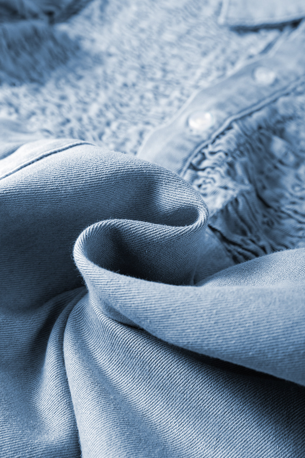 Beau Blue Flutter Sleeve Shirred Button Up Denim Mini Dress ‐ Beau Blue / L