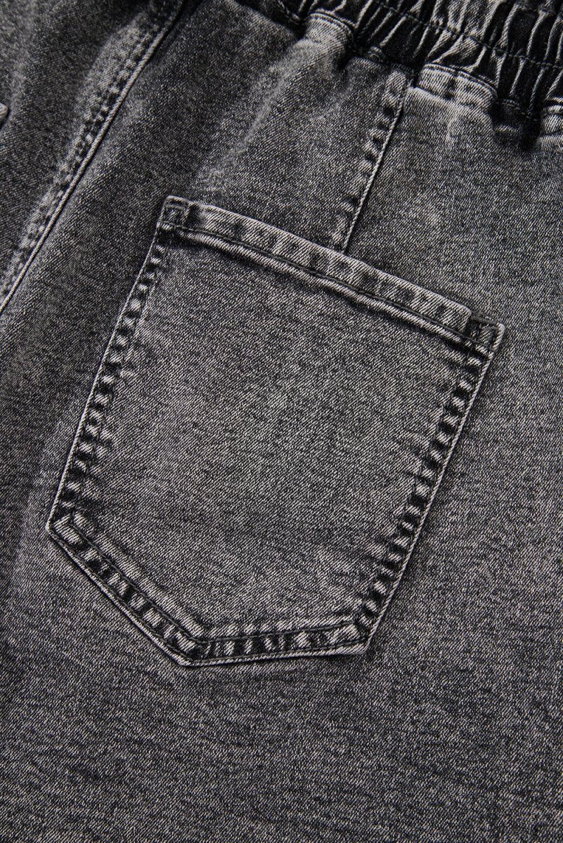 High-Rise Drawstring High Waist Casual Denim Shorts with Pockets ‐ High-rise / 10 / 59.8%Cotton+27.9%Polyester+10.6%Viscose+1.7%Elastane