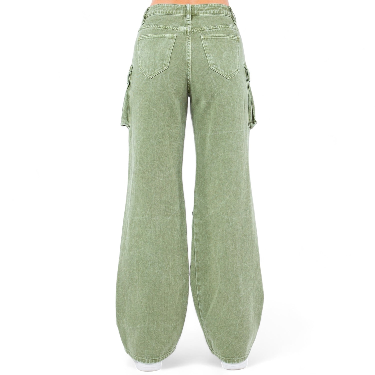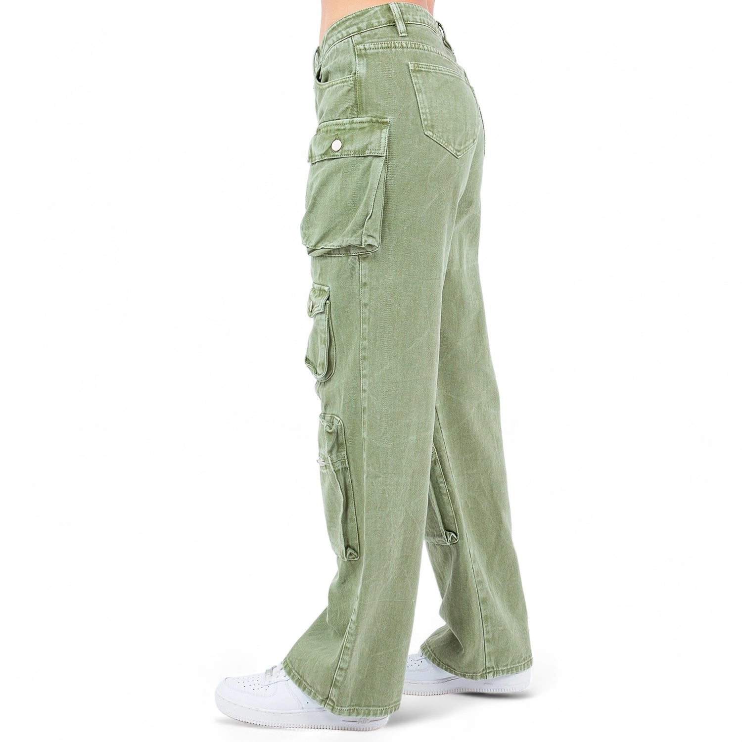 Multi Pockets Denim Wide Leg Cargo Pants-RJH30564 ‐ Medium