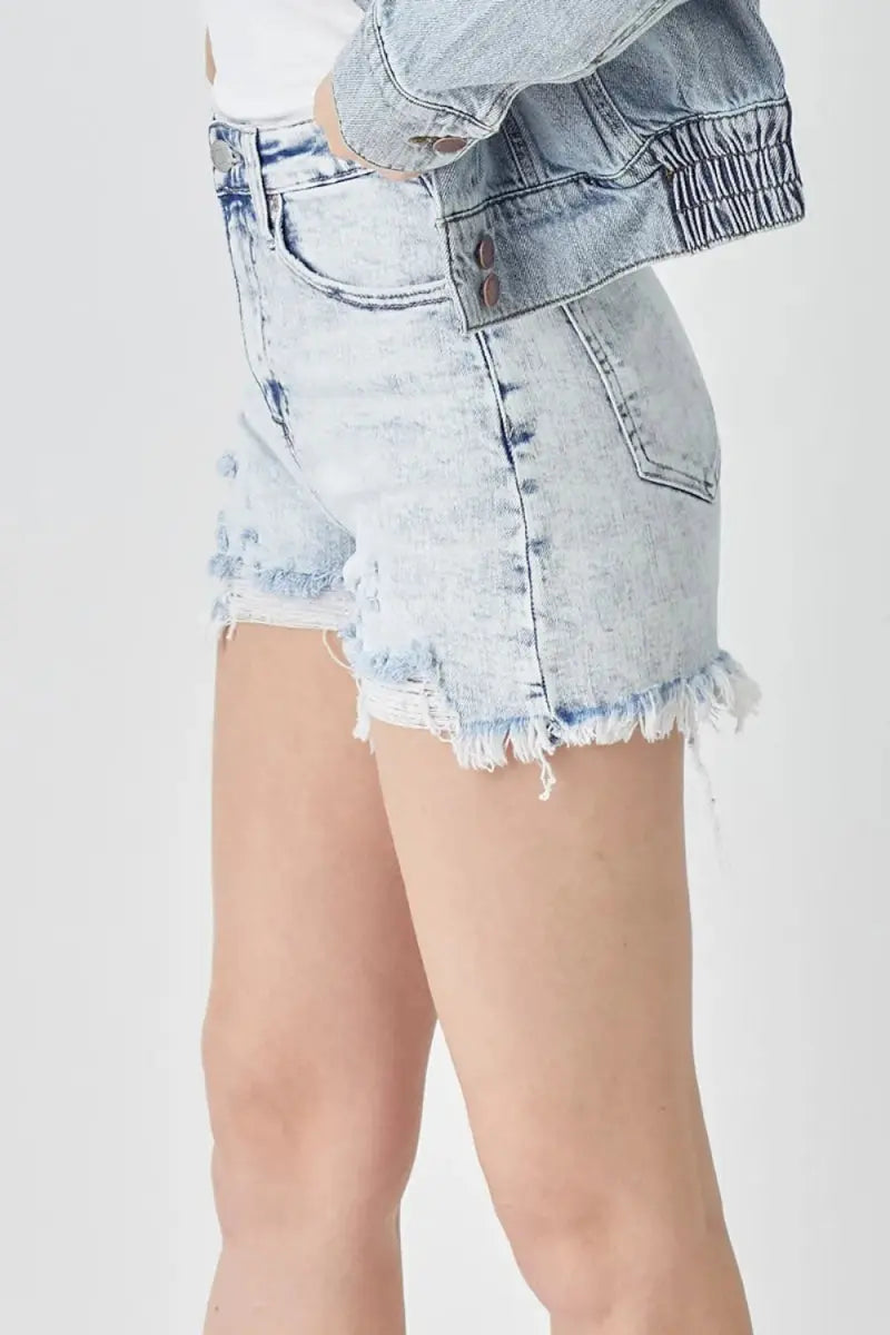 RISEN Raw Hem Distressed High Rise Denim Shorts