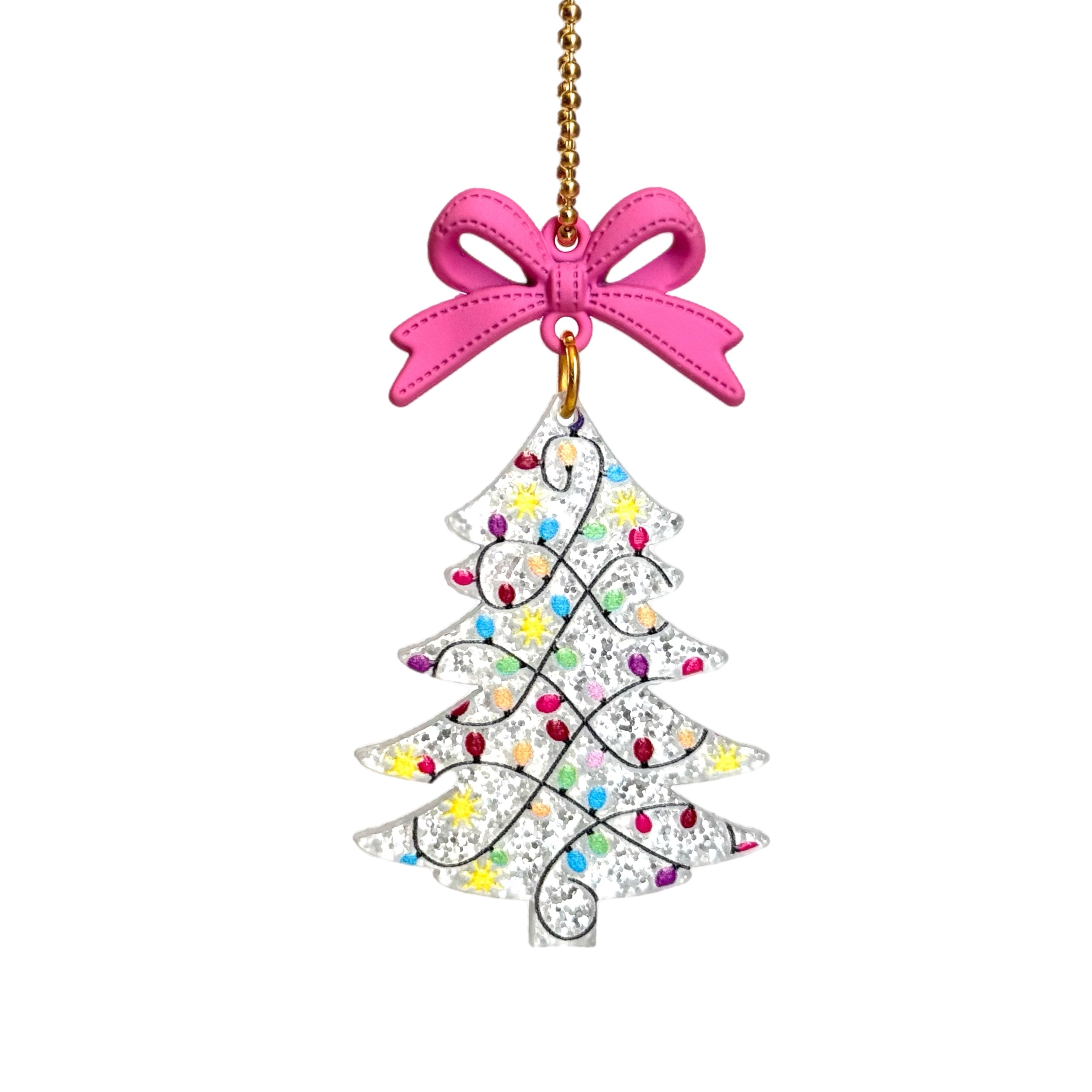 Coquette Christmas Tree Charm - Tumbler Handle Charm ‐ Pink Bow