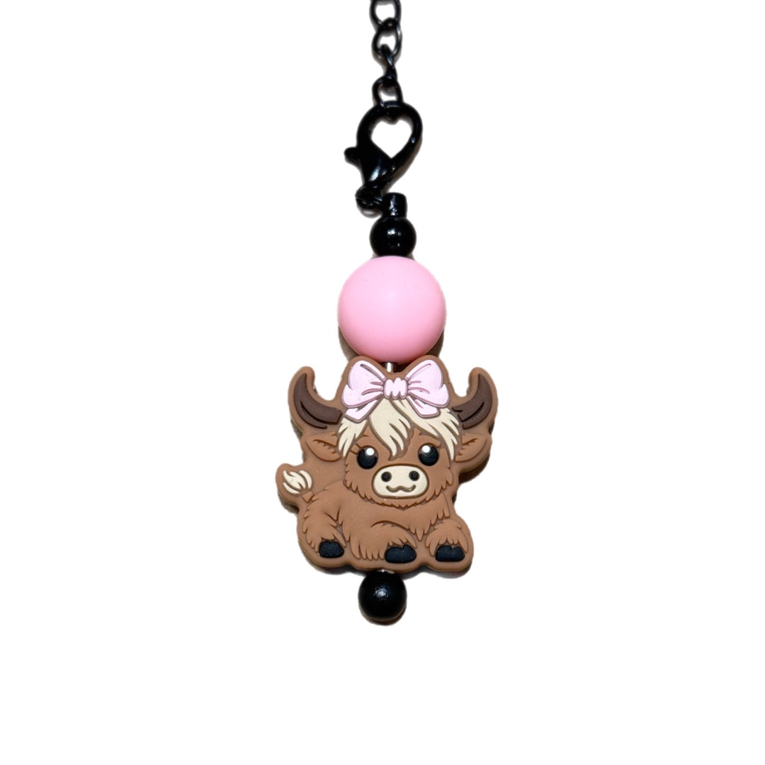CUTIE HIGHLAND COW Charm - Tumbler Handle Charm ‐ Pink Bow