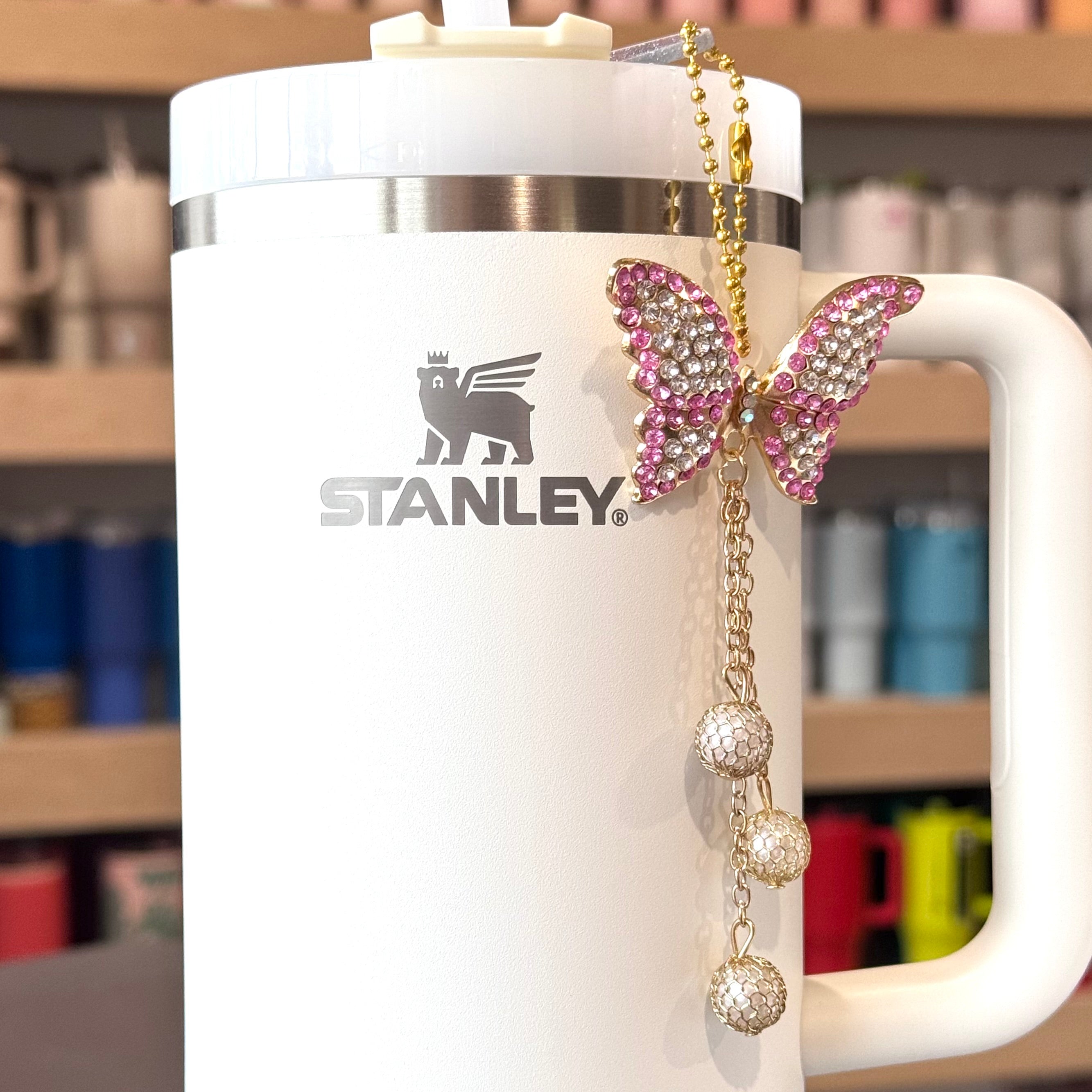 Pink Butterfly & Pearls Charm - Tumbler Handle Charm