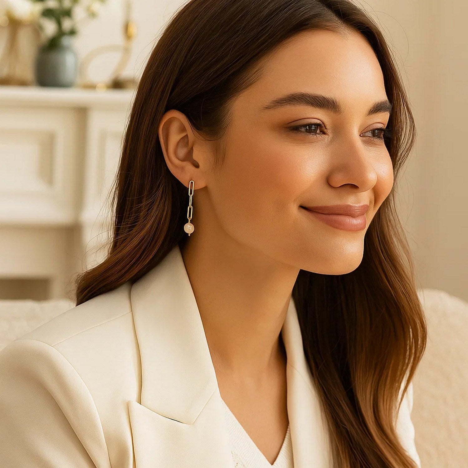 14k Yellow Gold Paperclip Chain Link Earrings with Pearls ‐ Gold