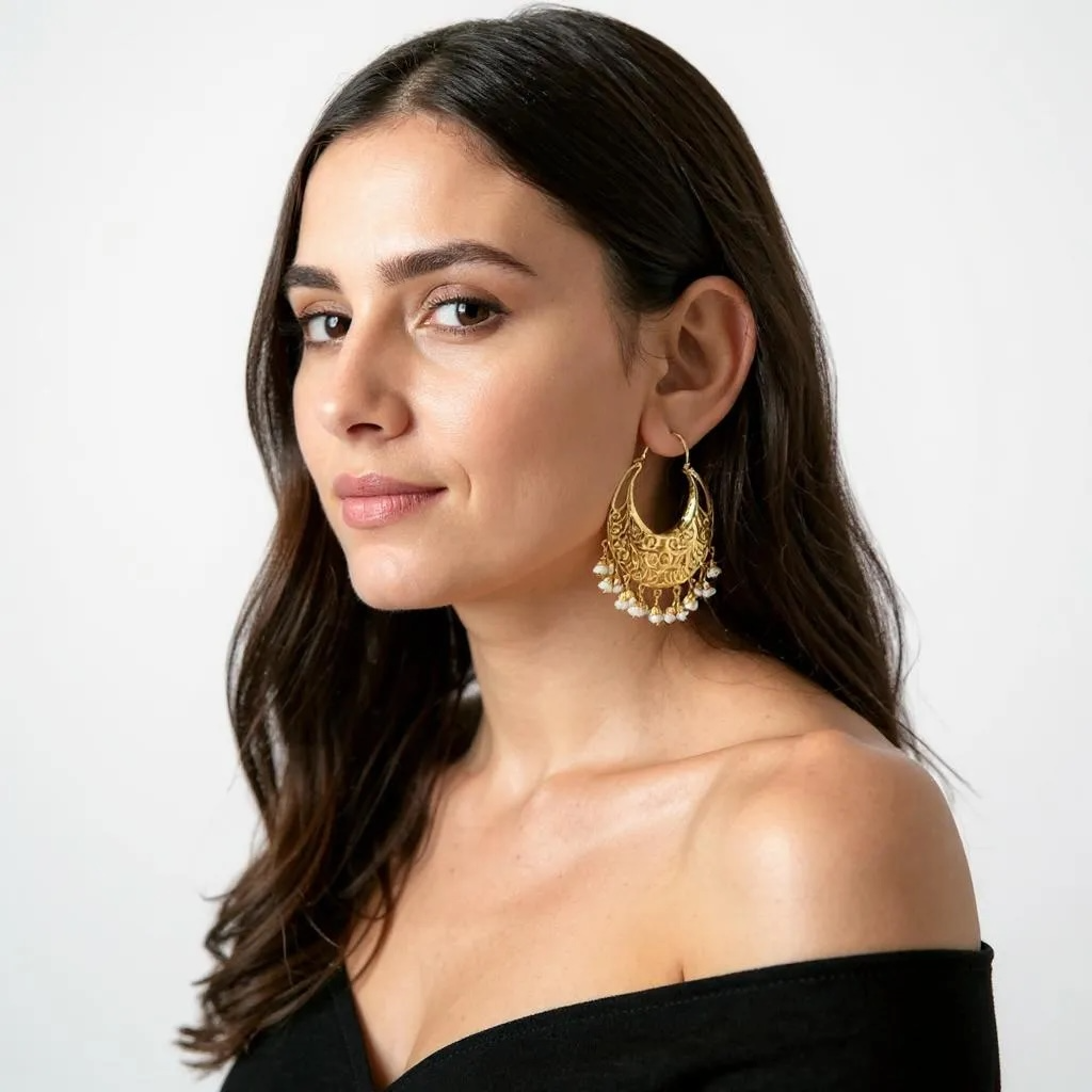 With their graceful hoop silhouette, pearl accents, and rich gold finish, these balis exude the understated grandeur of Hyderabadi nobility—making them a must-have for lovers of timeless tradition and artisanal beauty.