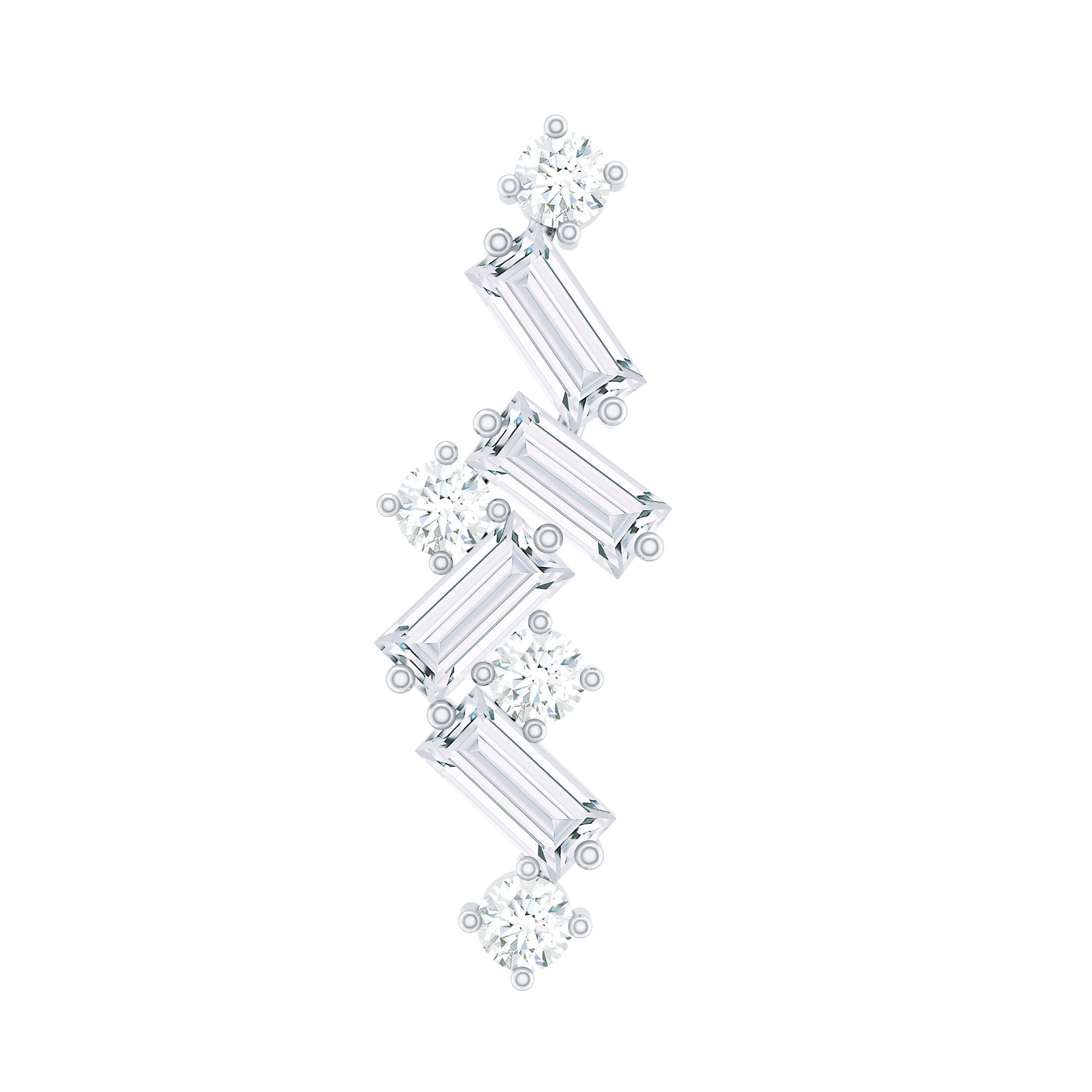 Baguette and Round Moissanite Cartilage Earring in Gold ‐ D-VS1 / 18K White Gold / Select Option