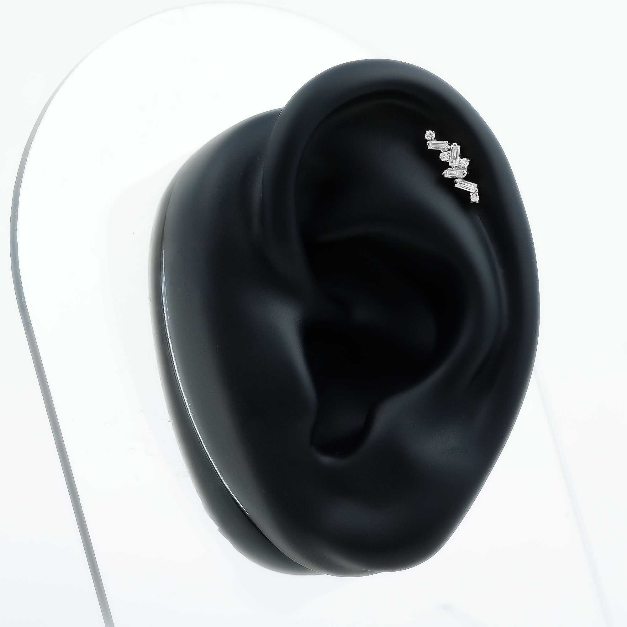 Baguette Diamond Cartilage Earring with Flat Back ‐ Natural - ( HI-SI ) / 18K White Gold / Flat Back 5.0 MM